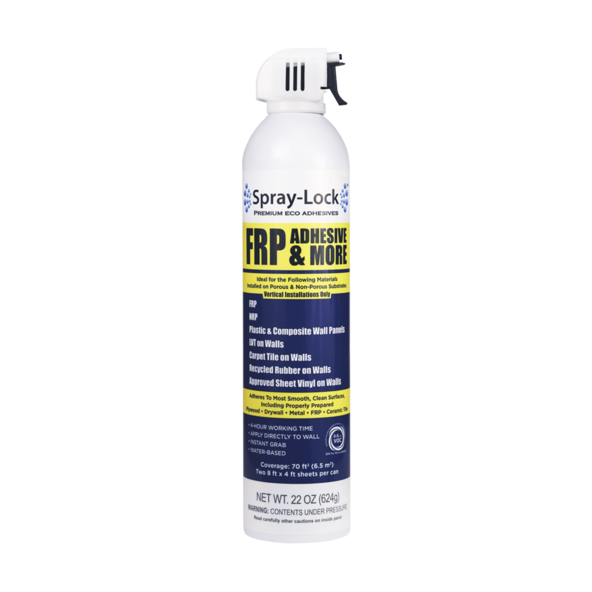 Spray-Lock FRP Adhesive has changed the rules for wall panel installations with its 4-hour working time. Installers can spray out the work area and immediately focus on panel installation. It also has instant grab that eliminates panels from sagging and can be applied over porous and non-porous substrates.