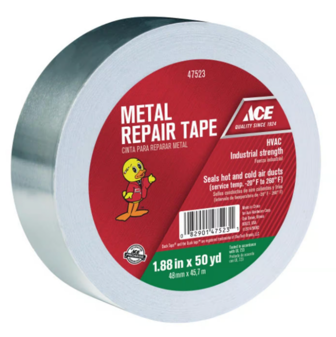 Designed for the professional contractor and DIYer, Ace HVAC duct tape is a durable, heavy-duty tape that works on both rigid and flexible ductwork. With a durable construction combining the protective benefits of aluminum with the superior adhesive of Ace duct tape, this flex foil tape is ideal for sealing both cold and hot air ducts. This silver adhesive tape is approved for use on metal air ducts and for working with a broad range of temperatures for flexible and rigid ducting. Just apply HVAC Duct Tape in strips along open or overlapping seams between duct paneling, joints, vents and more.