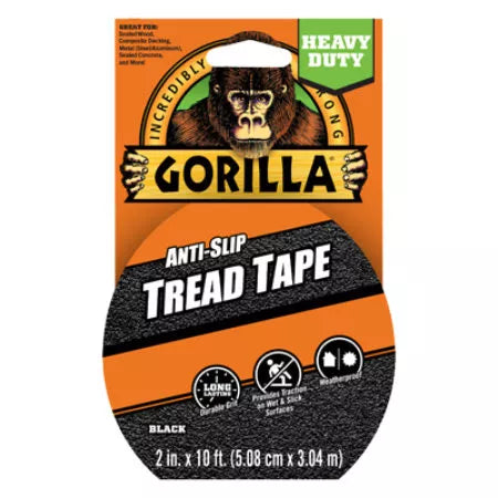 Gorilla Anti-Slip Tread Tape is designed to help prevent slips and falls by providing durable traction to wet, slick or high traffic areas. The multiple layers of protective coating ensure a heavy duty long lasting, durable grit for both indoors and out. Gorilla Anti-Slip Tread Tape is perfect for ladders, steps, ramps, boats, RVs, decks, and more!