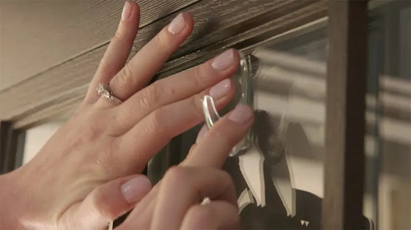 Apply tape to back of object vertically, allowing for even distribution of weight. Avoid touching surface of tape.