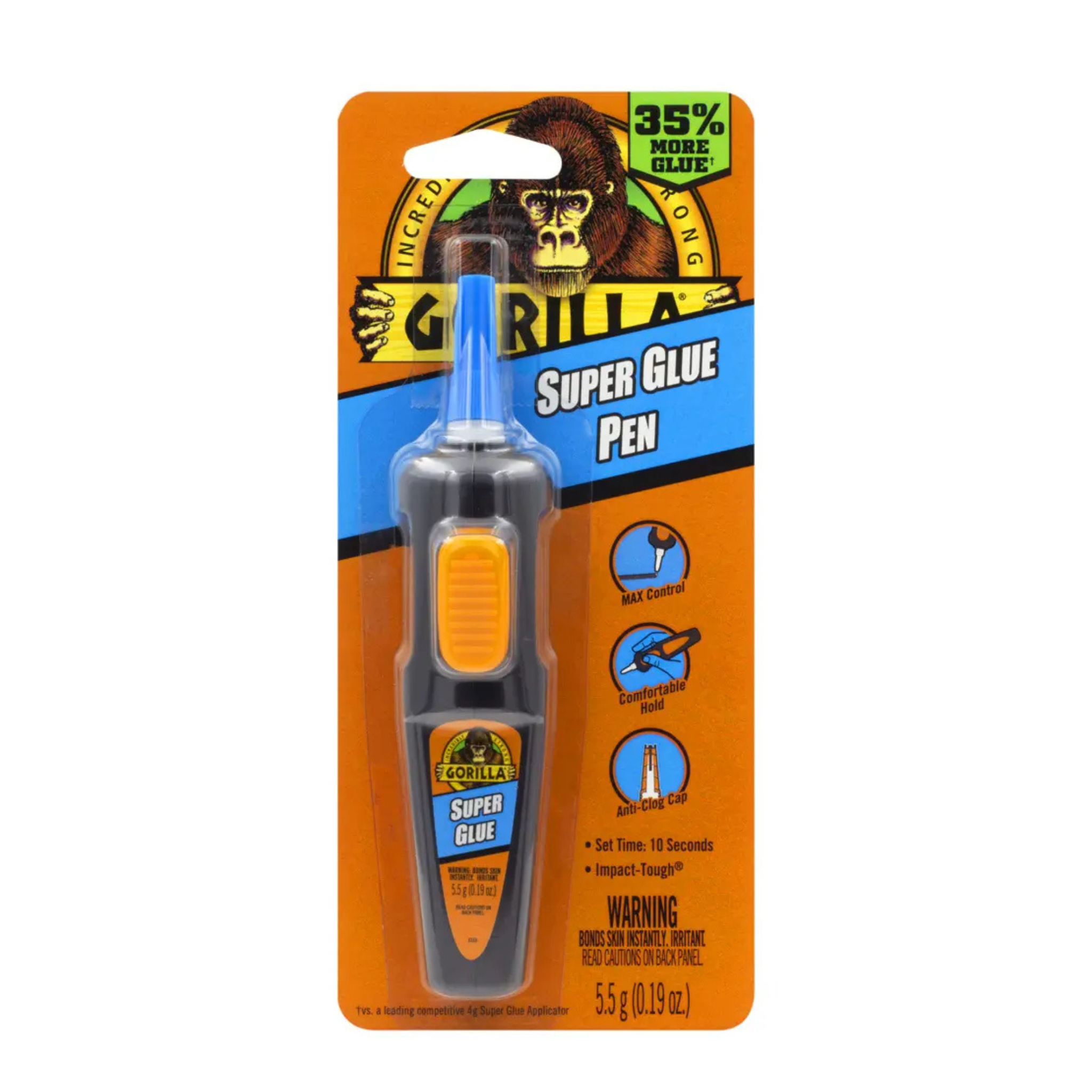 Our same strong and reliable Super Glue liquid formula, now in an intuitive pen-shaped applicator. Gorilla Super Glue Pen dispenses super glue in an uninterrupted line, providing maximum control while fitting comfortably in hand.