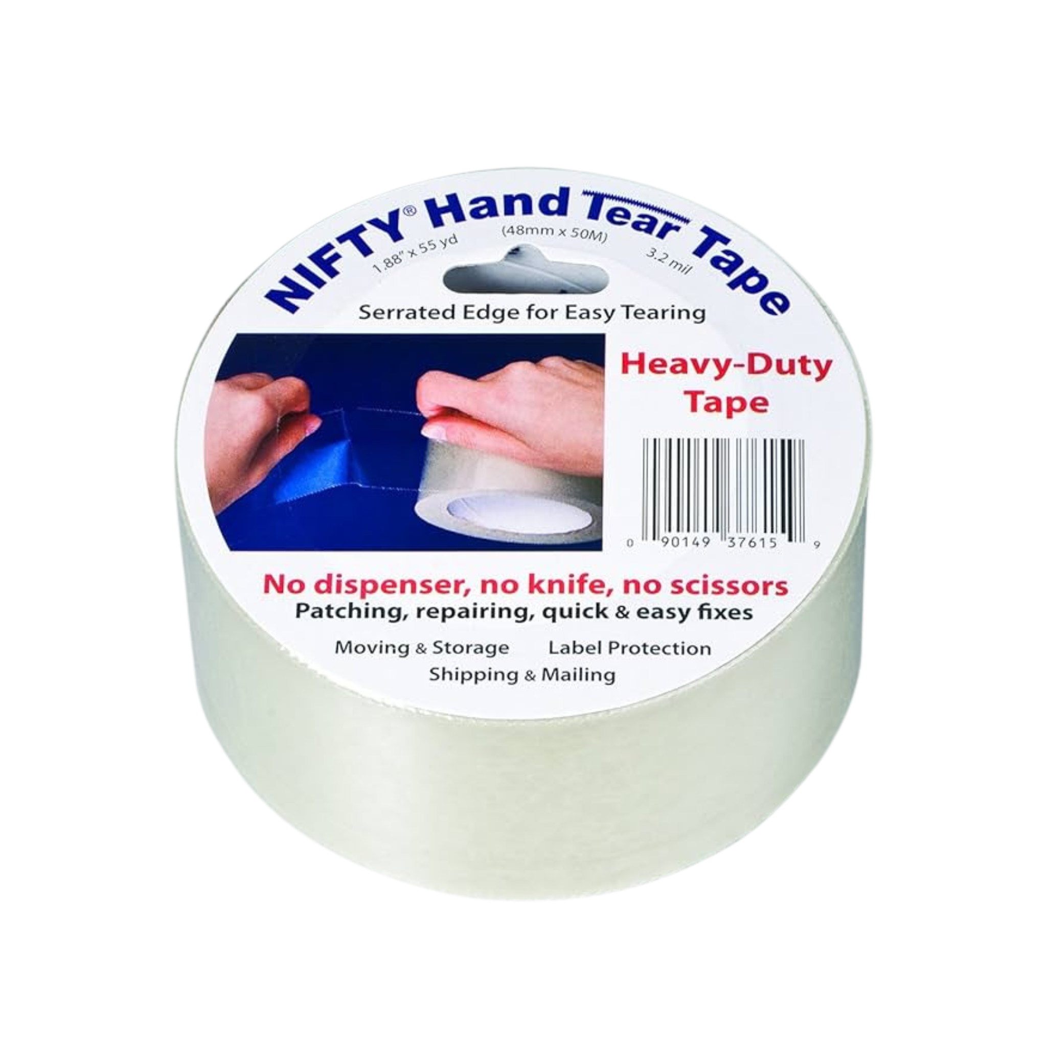 Serrated edges make this tape easy to tear by hand. No dispenser, knife or scissors needed. Heavy-duty 3.2 mil tape with aggressive adhesive for a strong grip.