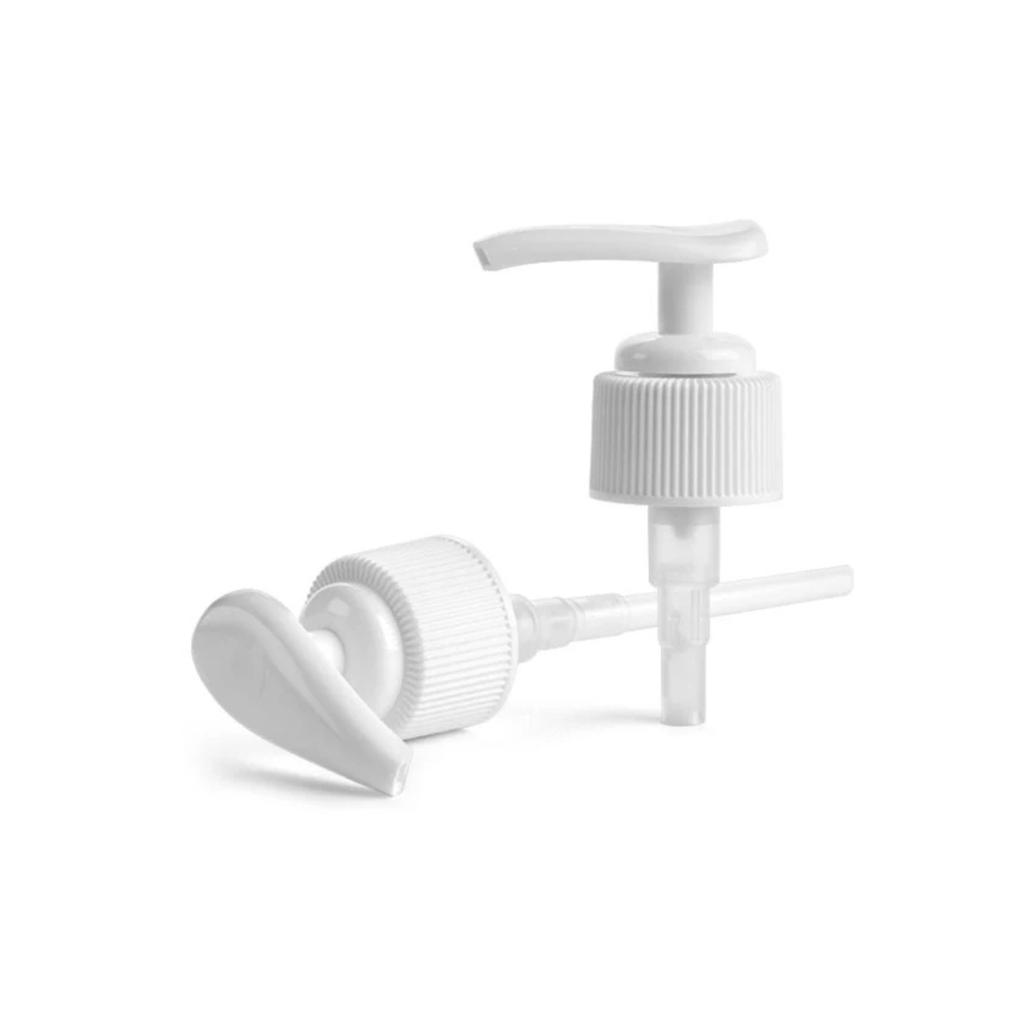 The white polypropylene lotion pumps allow for high viscosity products such as lotions and liquid soaps to be easily dispensed. Each pump dispenses 0.5 ml of product per stroke and features a metal-free fluid pathway. A locking slot concealed within the lotion pumps head keeps the pump securely in the locked position until released - pumps are shipped in locked position. The white lotion pumps could be used with glass, plastic or metal containers. Be sure to test lotion pumps with your container to ensure proper compatibility.