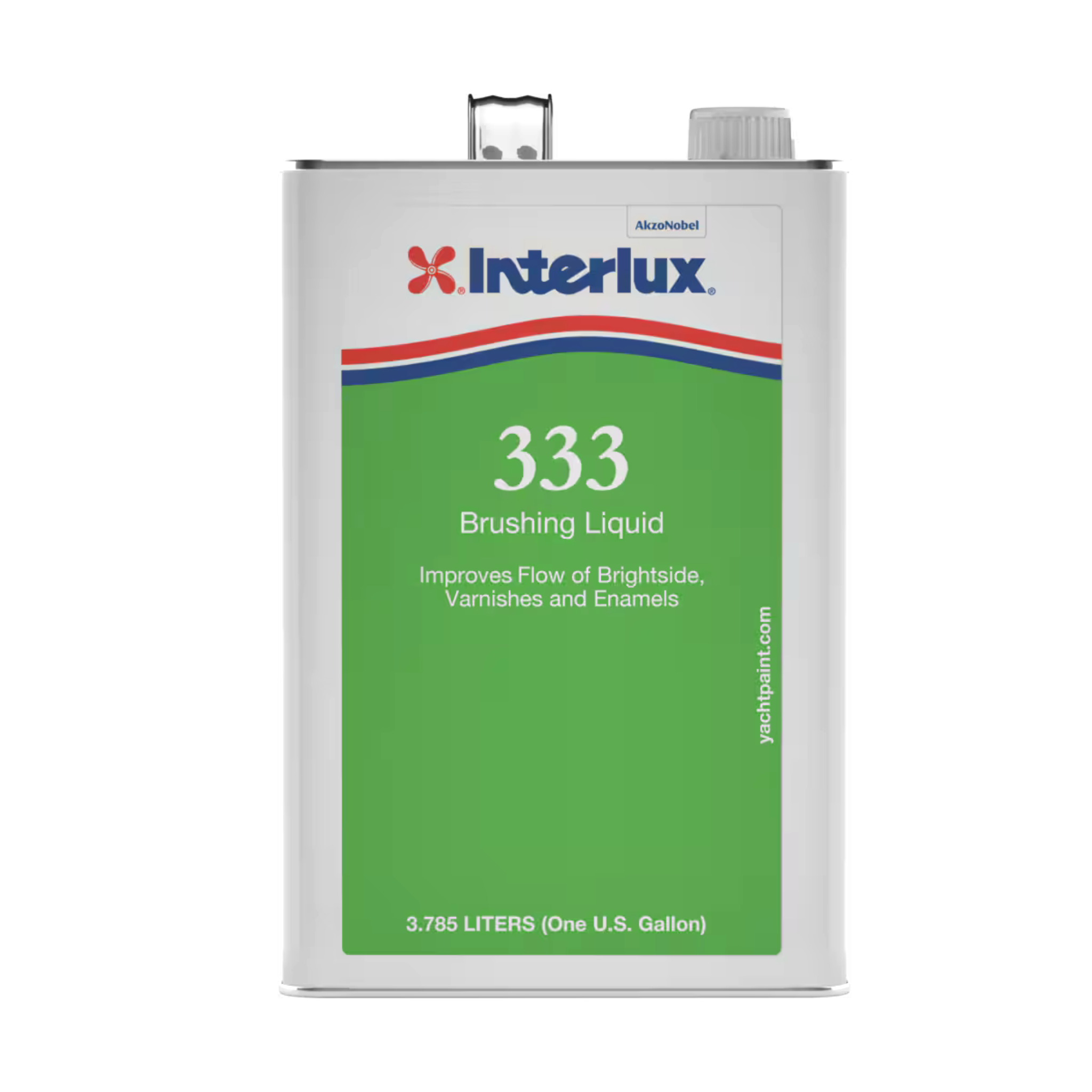 A slow drying solvent, Brushing Liquid 333 eases brushing and helps with the flow of specified paint coatings. It’s also recommended for use in various topside systems to remove sanding residue from fiberglass and wood surfaces.