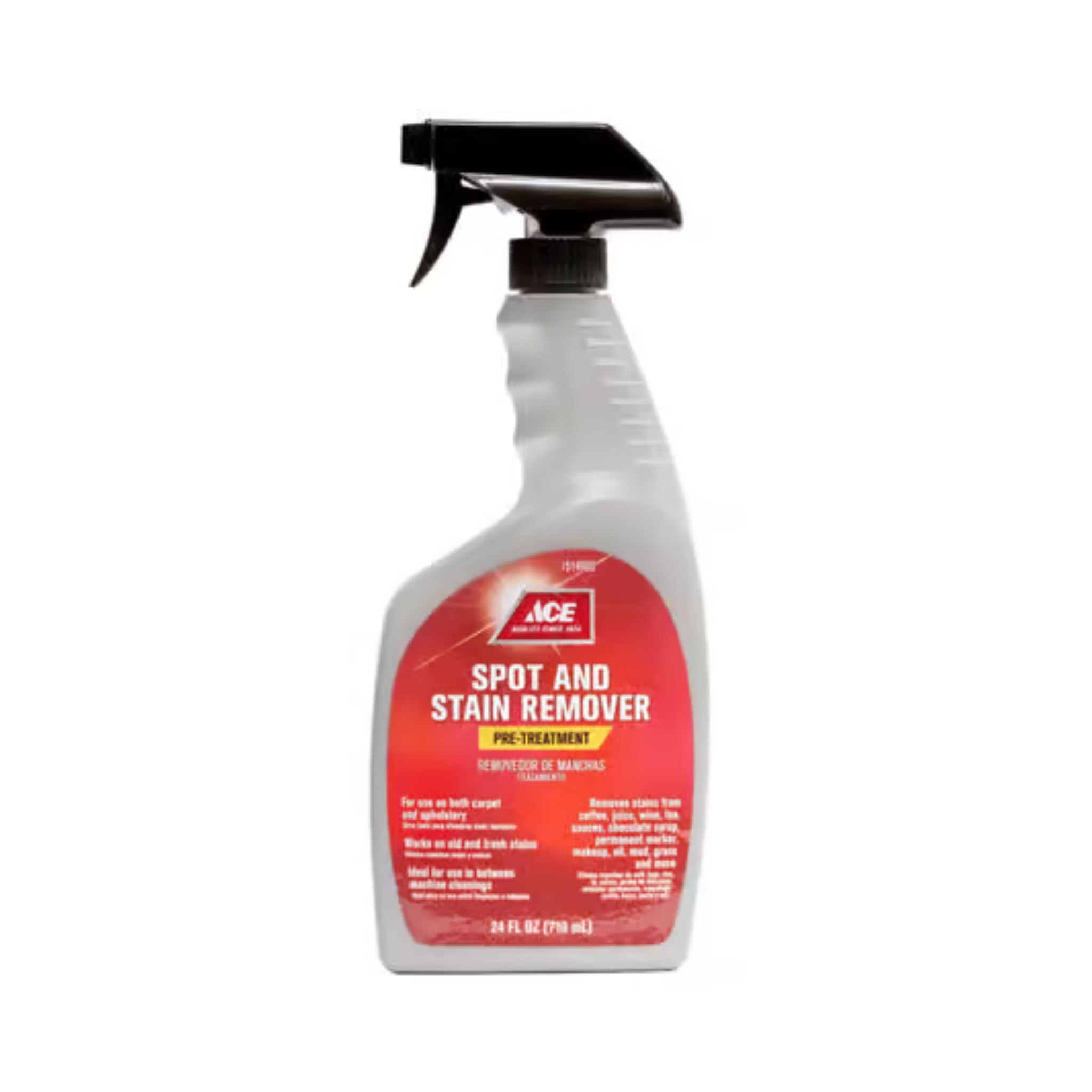 Ace Stain Remover 24 Trigger. For use on both carpet and upholstery. Works on old and fresh stains. Ideal for use in between machine cleanings.