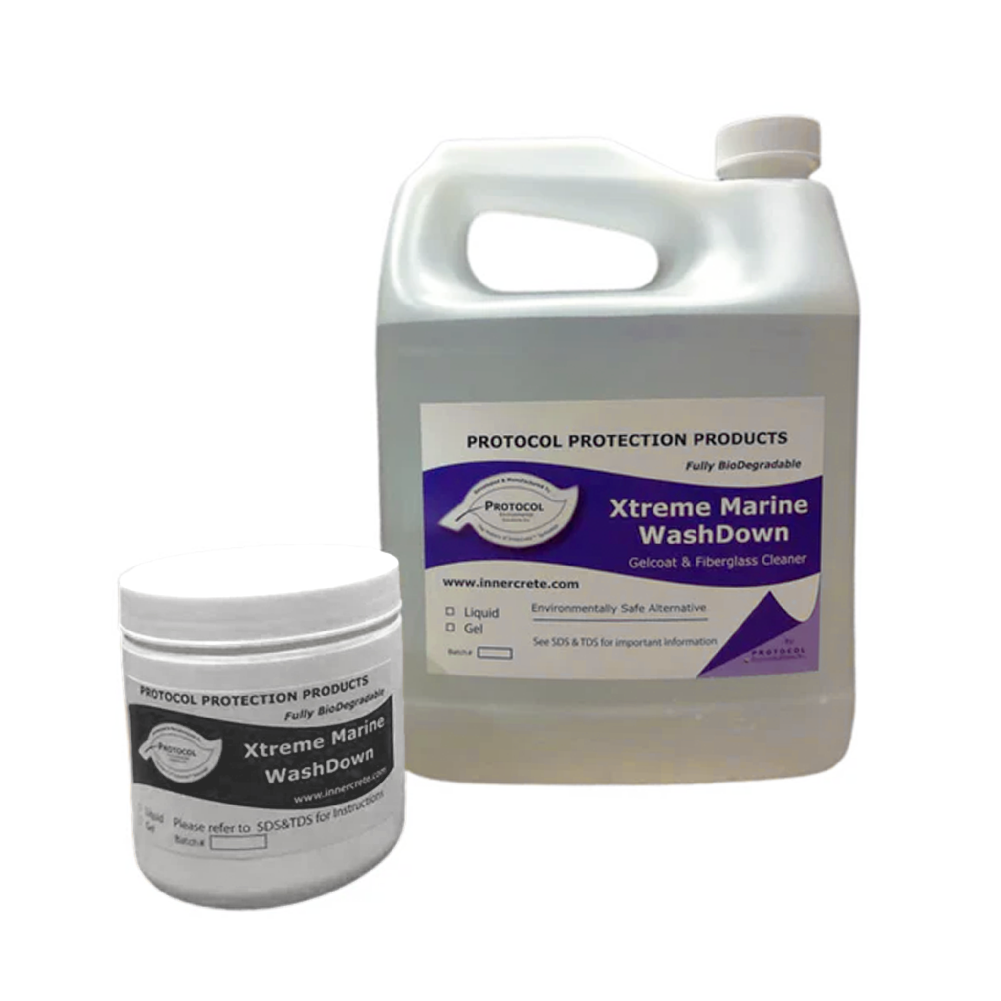 Xtreme Marine WashDown – Heavy-duty boat and gel coat cleaner ideal for tough “spot stain” removal, especially rust out of gel coat and rust off of stainless steel.  It easily removes deeply imbedded rust, stains, yellowing, residues and other grime off a variety of boat and marine surfaces.  It is a safer alternative to hydrochloric acid and other corrosive cleaners.