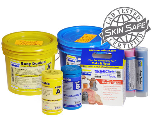 Body Double™ is a long lasting platinum-cure silicone rubber that can be applied directly to the skin to make molds of the face, hands and other body parts. The rubber cures quickly and will reproduce perfect detail from any original model – far better detail than any alginate! Body Double™ is skin safe and certified by an independent laboratory.