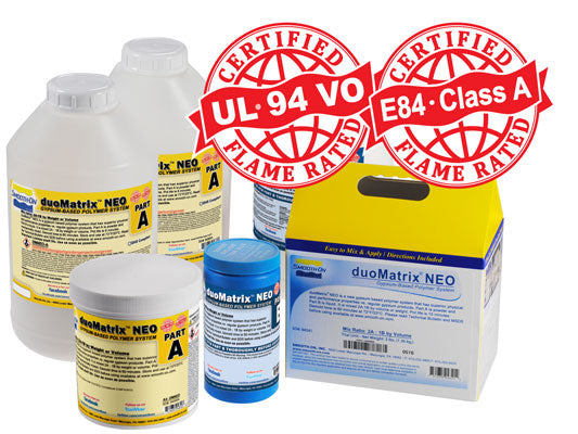 duoMatrix™ NEO is a versatile polymer modified gypsum system that has superior physical and performance properties compared to regular gypsum products. Part A is powder and Part B is liquid.
