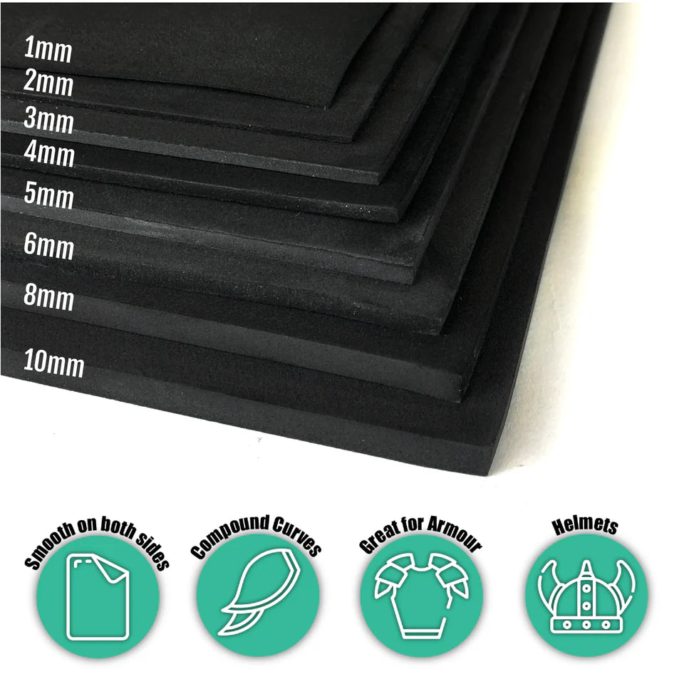 - Super formable EVA foam, heat forms very easily for compound curves and armour.