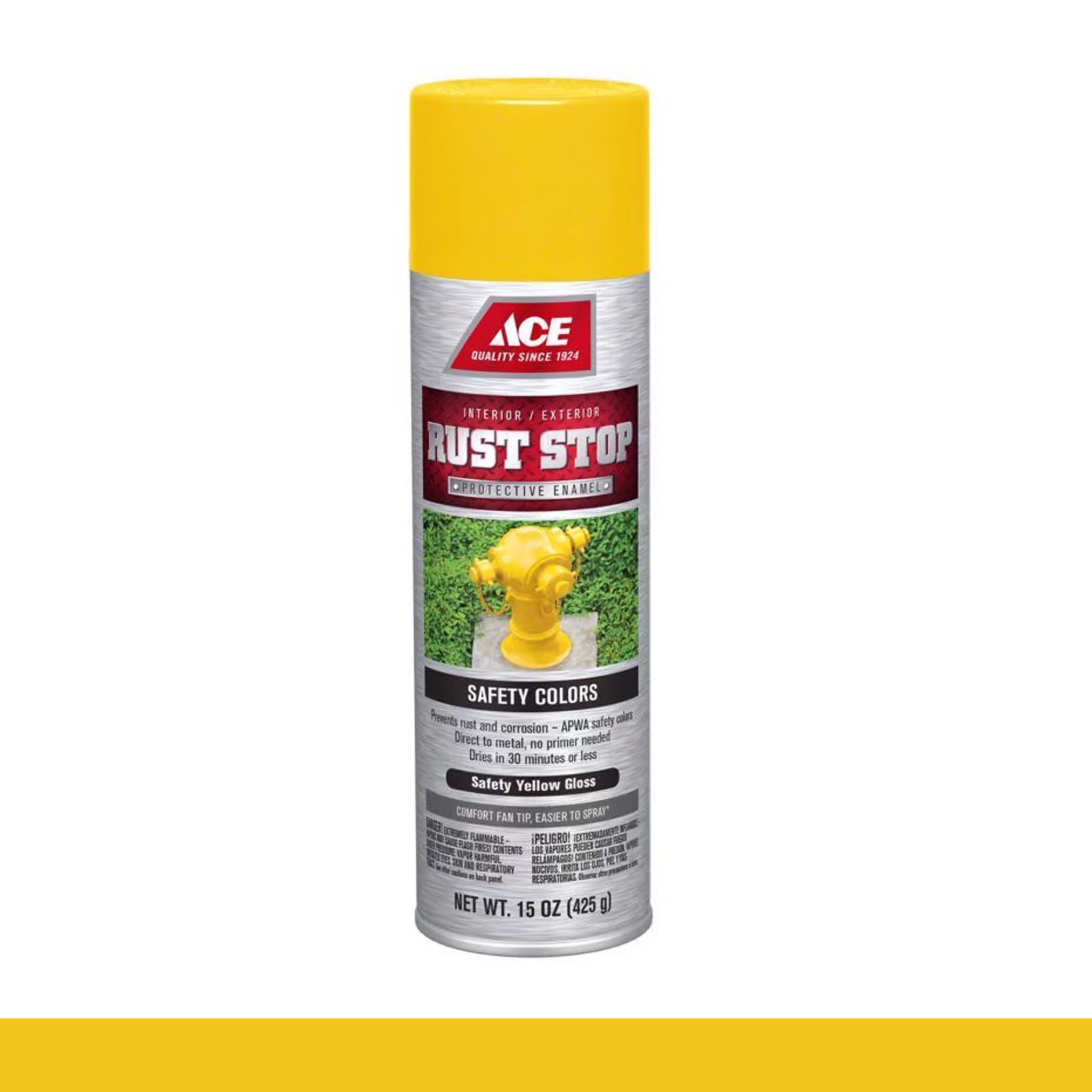 Ace Rust Stop Protective Enamel provides superior protection against rust and corrosion, a smooth & durable finish and fast dry time. Can be applied directly to metal or, for added protection, a primer base coat can be used. Tip is 40% easier to spray as compared to traditional nozzles.