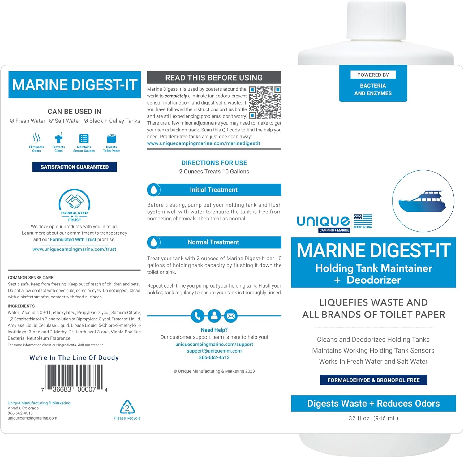 Marine Digest-It is guaranteed to make pump-outs a breeze by turning everything in your gray and black holding tanks into liquid, including household toilet paper. It is also a tough deodorizer for bilge areas!