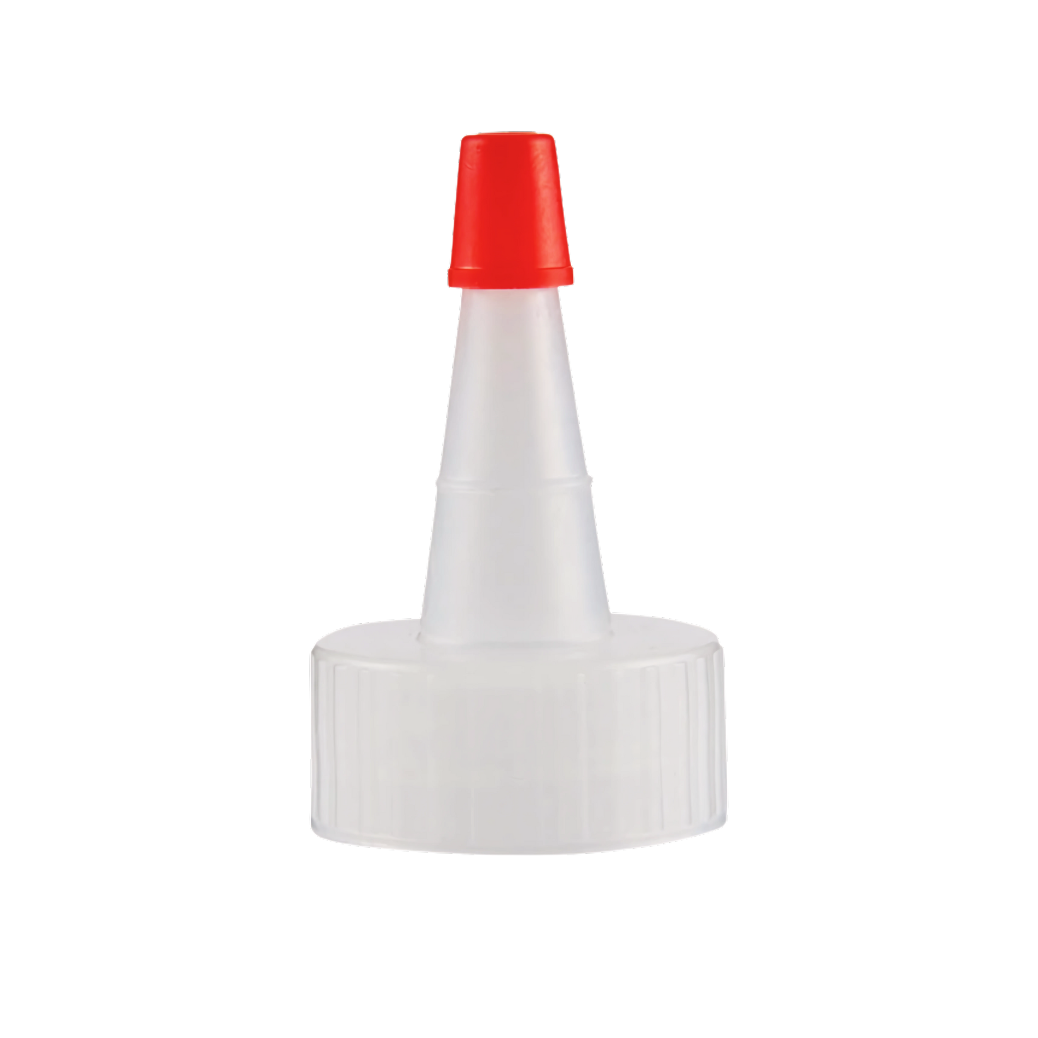 The natural LDPE Yorker spout caps have a .030 hole with an attached red tip. The Yorker caps are designed to aid in the dispensing of the contents of the container through a hole at the end of the cone shaped cap. These dispensing caps are great for condiments, glues, paints, and modeling and craft activities. Available in 20mm, 24mm and 28mm neck sizes.