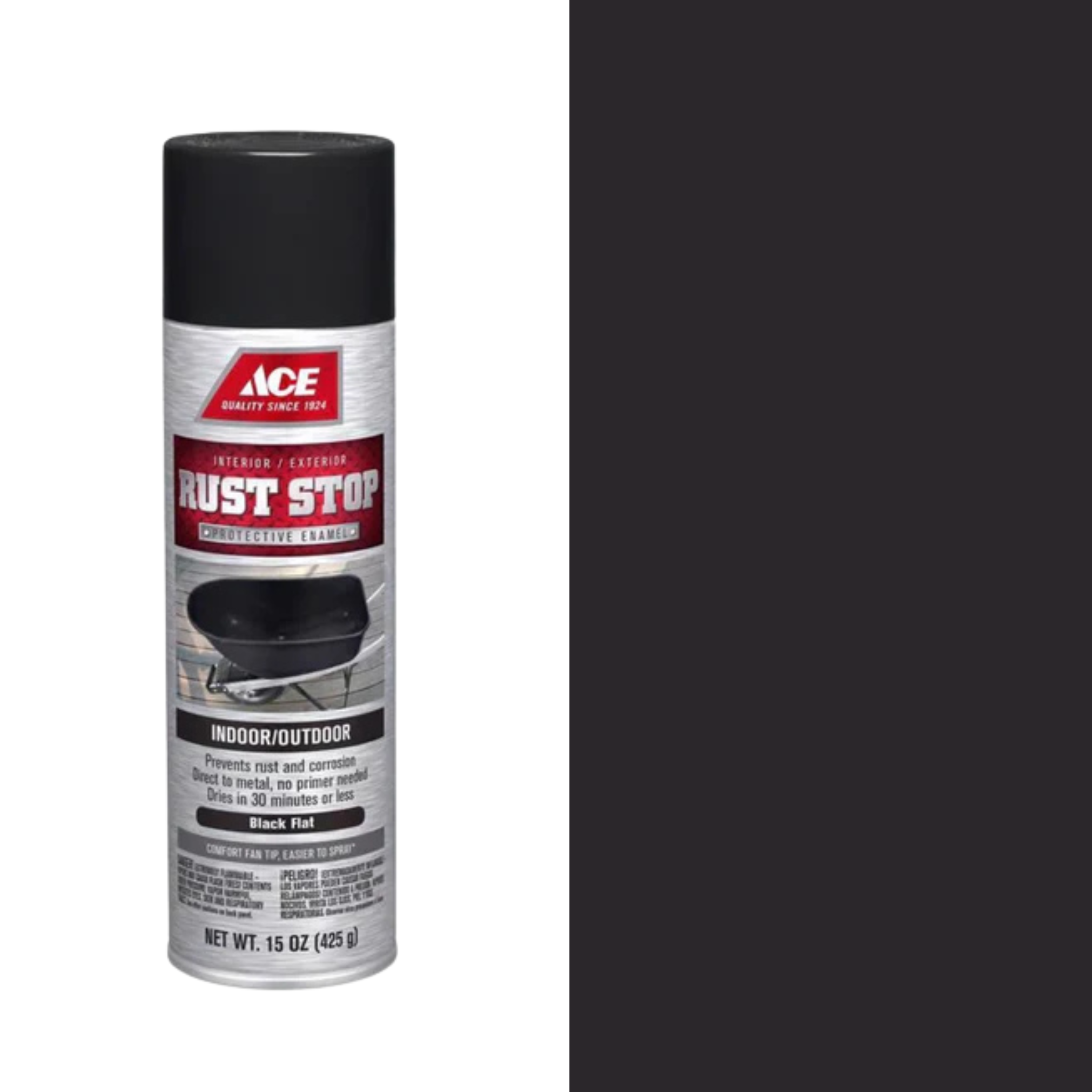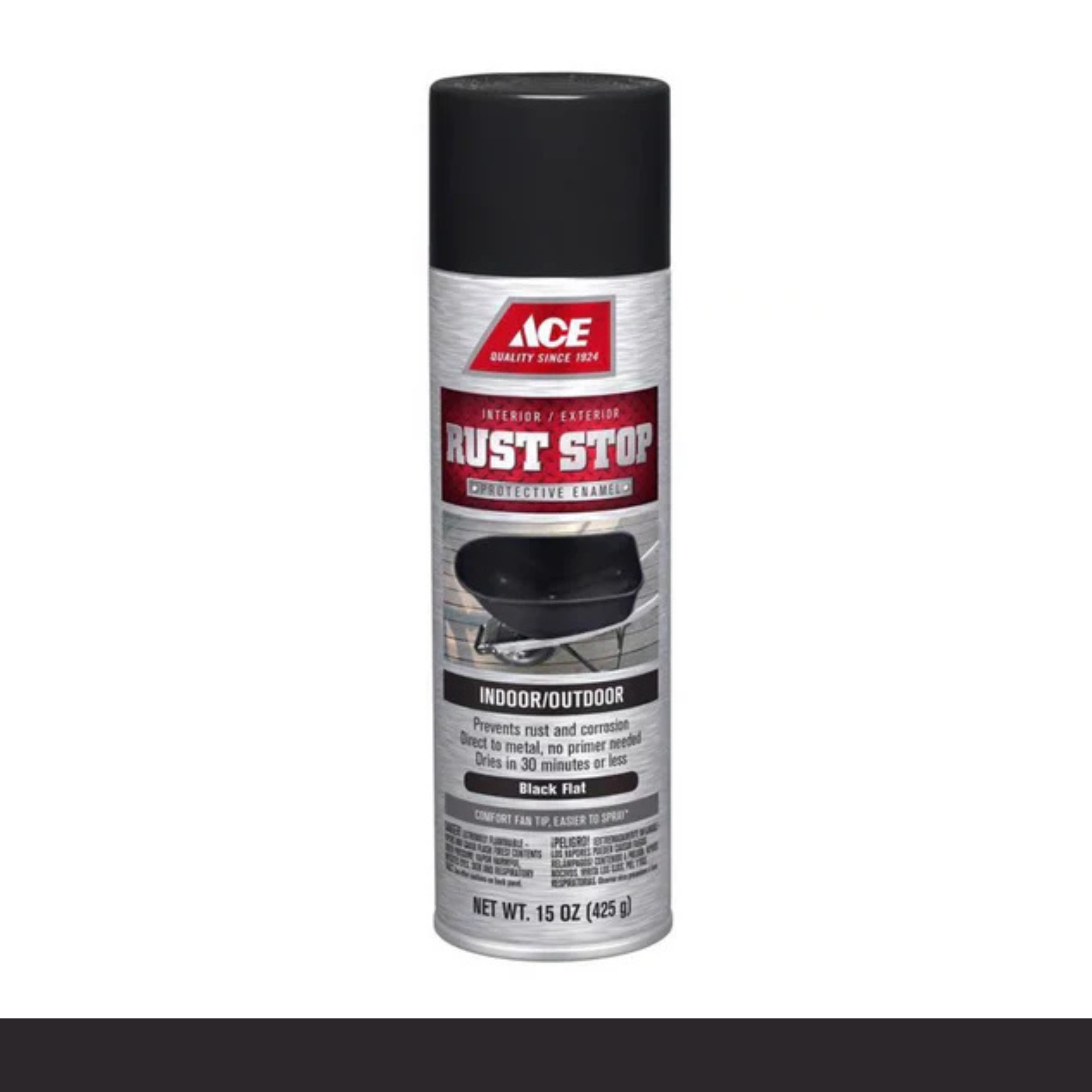 Ace Rust Stop Protective Enamel provides superior protection against rust and corrosion, a smooth & durable finish and fast dry time. Can be applied directly to metal or, for added protection, a primer base coat can be used. Tip is 40% easier to spray as compared to traditional nozzles.