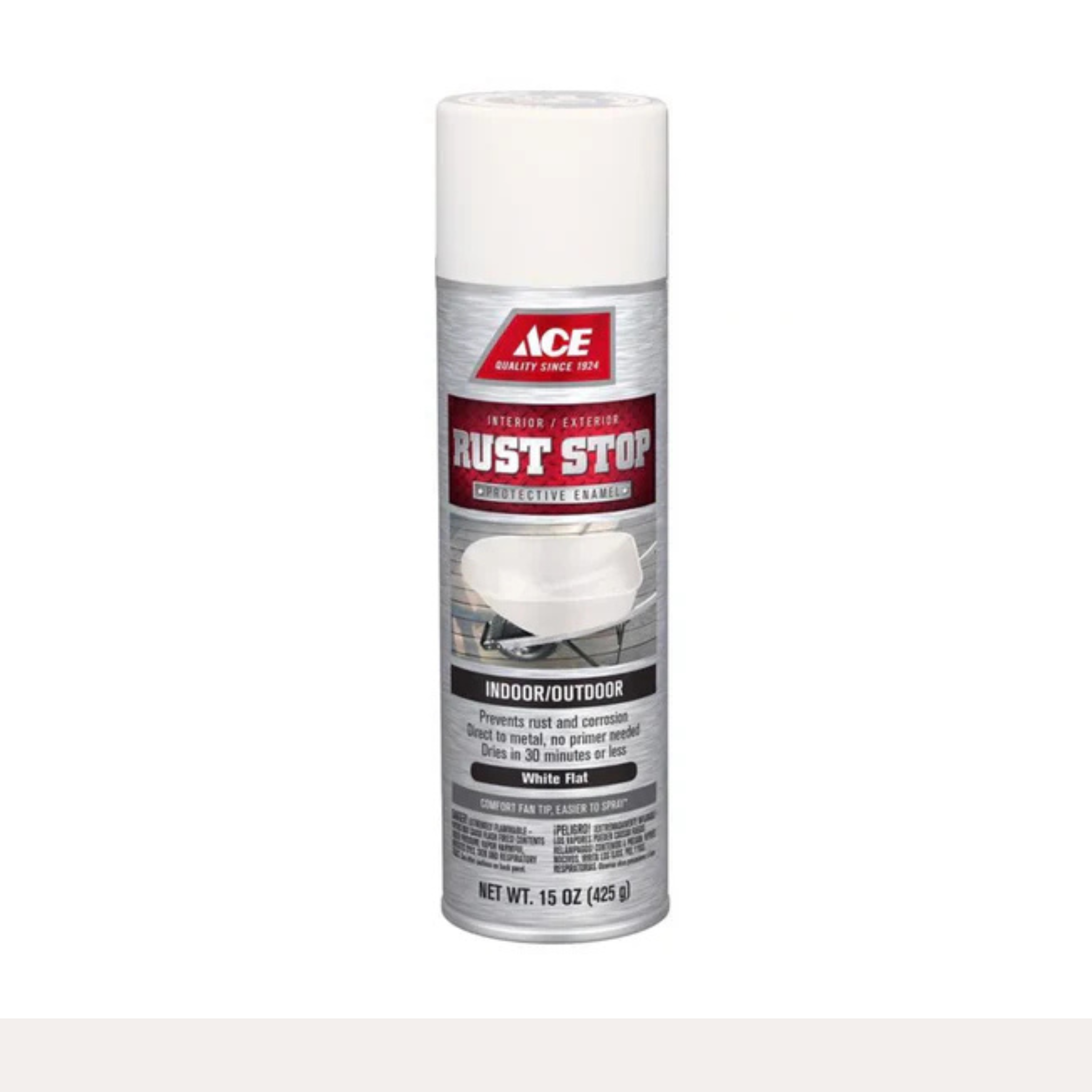 Ace Rust Stop Protective Enamel provides superior protection against rust and corrosion, a smooth & durable finish and fast dry time. Can be applied directly to metal or, for added protection, a primer base coat can be used. Tip is 40% easier to spray as compared to traditional nozzles.