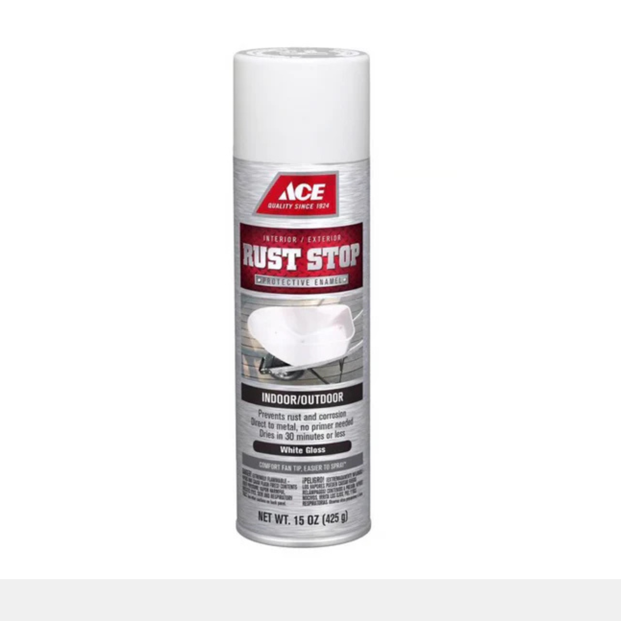 Ace Rust Stop Protective Enamel provides superior protection against rust and corrosion, a smooth & durable finish and fast dry time. Can be applied directly to metal or, for added protection, a primer base coat can be used. Tip is 40% easier to spray as compared to traditional nozzles.