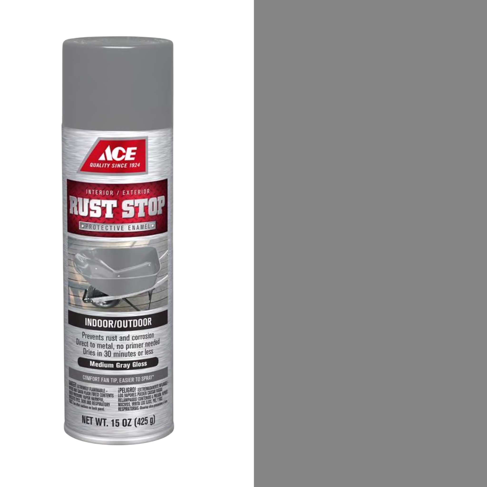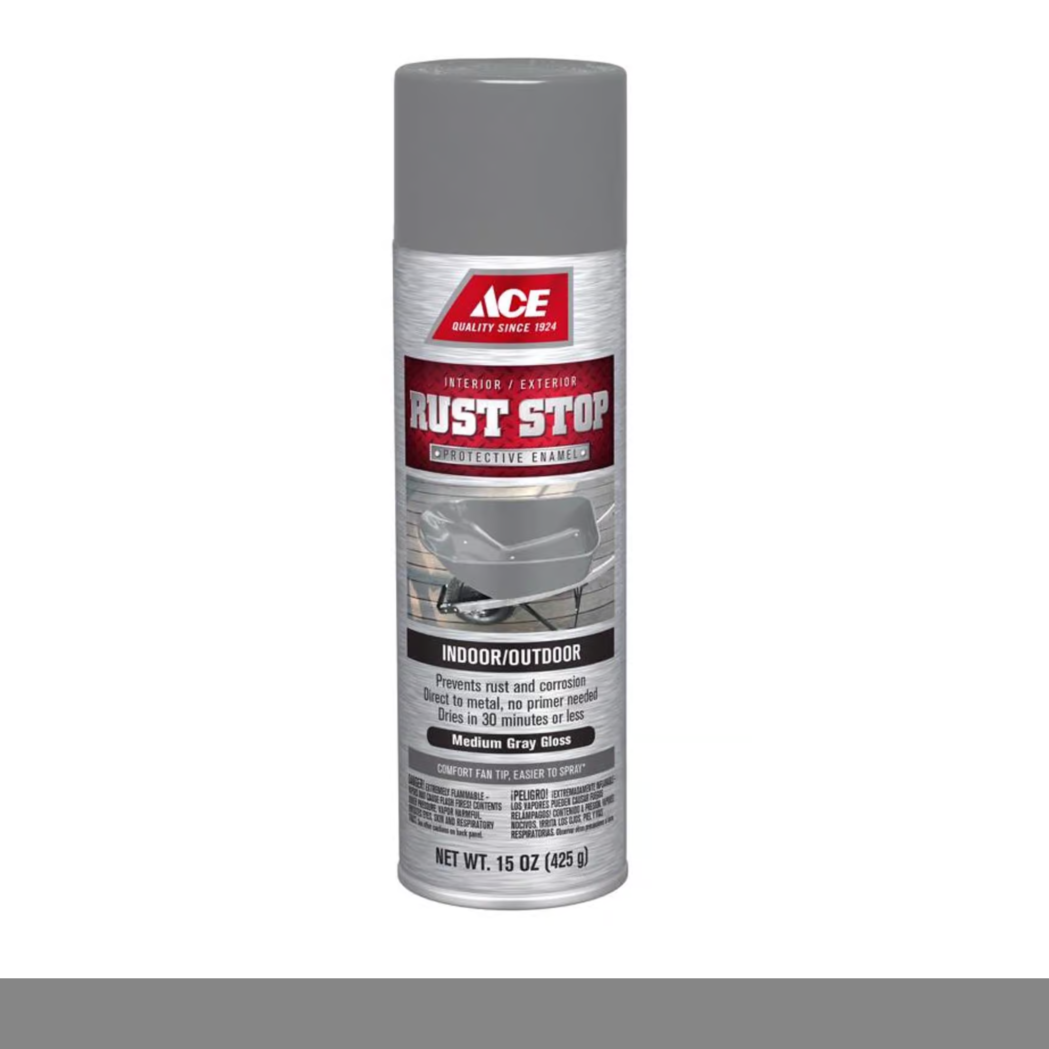 Ace Rust Stop Protective Enamel provides superior protection against rust and corrosion, a smooth & durable finish and fast dry time. Can be applied directly to metal or, for added protection, a primer base coat can be used. Tip is 40% easier to spray as compared to traditional nozzles.