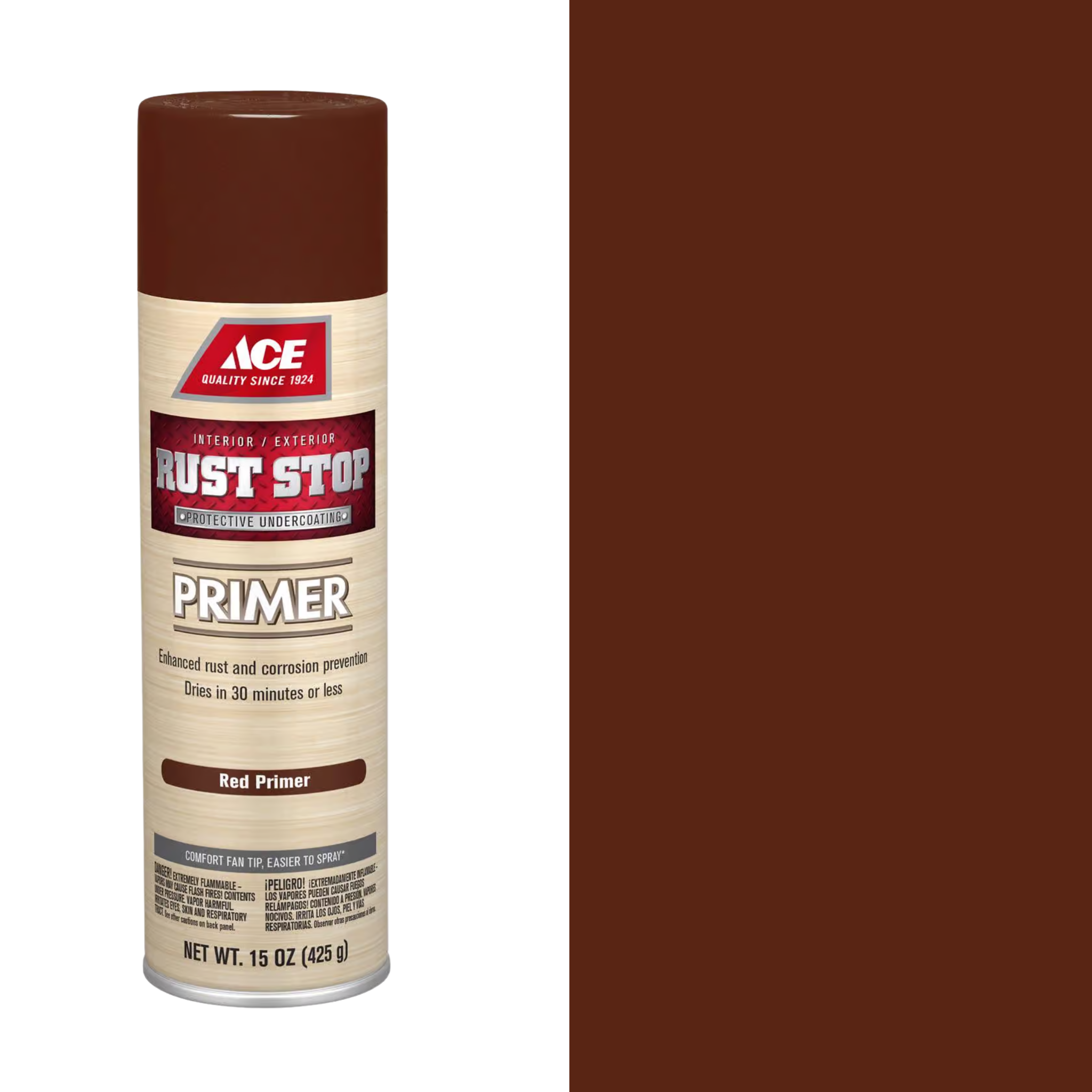 Ace Rust Stop Protective Enamel provides superior protection against rust and corrosion, a smooth & durable finish and fast dry time. Can be applied directly to metal or, for added protection, a primer base coat can be used. Tip is 40% easier to spray as compared to traditional nozzles.