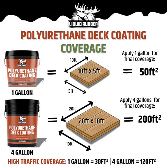 Say goodbye to yearly repainting with Liquid Rubber Polyurethane Deck Coating, which is 10X stronger than regular deck paint. This premium deck coating is perfect for all deck types, including wood deck boards, plywood decks, balconies, pool surrounds, fiberglass, vinyl, and concrete.