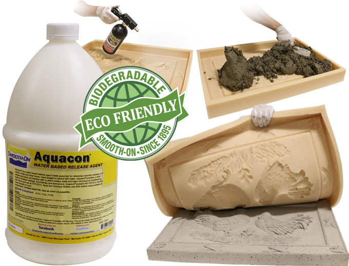 AquaCon™ is a water based concrete release agent that aids in releasing concrete castings from Smooth-On rubber molds, latex molds (Holden's HX-974 and HX-80), and other surfaces such as melamine, metal and non-porous (sealed) wood. It provides a clean, positive release, does not interfere with color or surface detail and helps minimize bug holes and air bubbles in finished castings.
