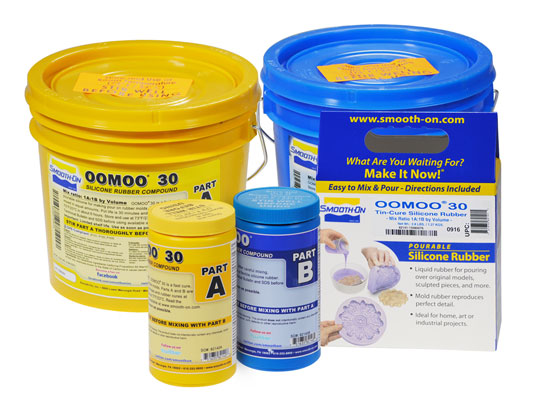 No Vacuuming – No Scale – Easy To Use . . . OOMOO™ 30 is an easy to use tin cure silicone rubber compound that features a convenient one-to-one by volume mix ratio (no scale necessary). It has low viscosity for easy mixing and pouring . . . vacuum degassing is not necessary. This product cures at room temperature with negligible shrinkage. OOMOO™ 30 has a 30-minute pot life, with a six-hour cure time.