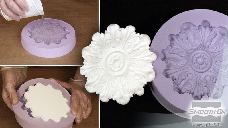 Mold Performance & Storage – The physical life of the mold depends on how you use it (materials cast, frequency, etc.). Casting abrasive materials such as concrete will quickly erode mold detail, while casting non-abrasive materials (wax) will not affect mold detail. Before storing, the mold should be cleaned with a soap solution and wiped fully dry. Two part (or more) molds should be assembled. Molds should be stored on a level surface in a cool, dry environment.