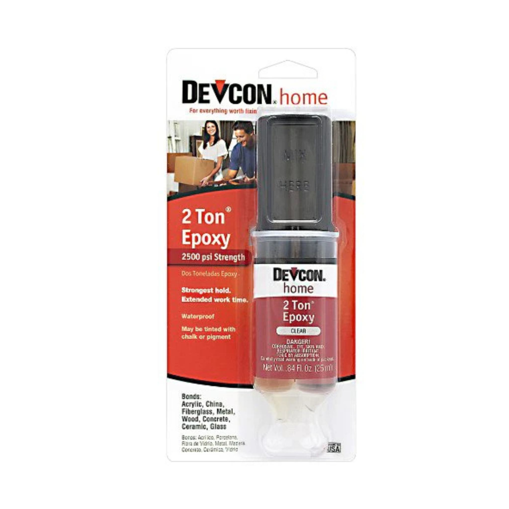 Extremely strong, water-resistant epoxy adhesive that forms a powerful bond with ferrous and non-ferrous metals, ceramics wood, concrete, or glass in any combination.