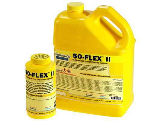 SO-FLEX™ II is a phthalate free is a softening agent that will lower the cured durometer of a variety of Smooth-On flexible polyurethane products. The following charts indicate the effect SO-FLEX™ II has on various fully cured (7 days at 73°F/23°C) urethane rubbers when added as a percentage of the total mix.