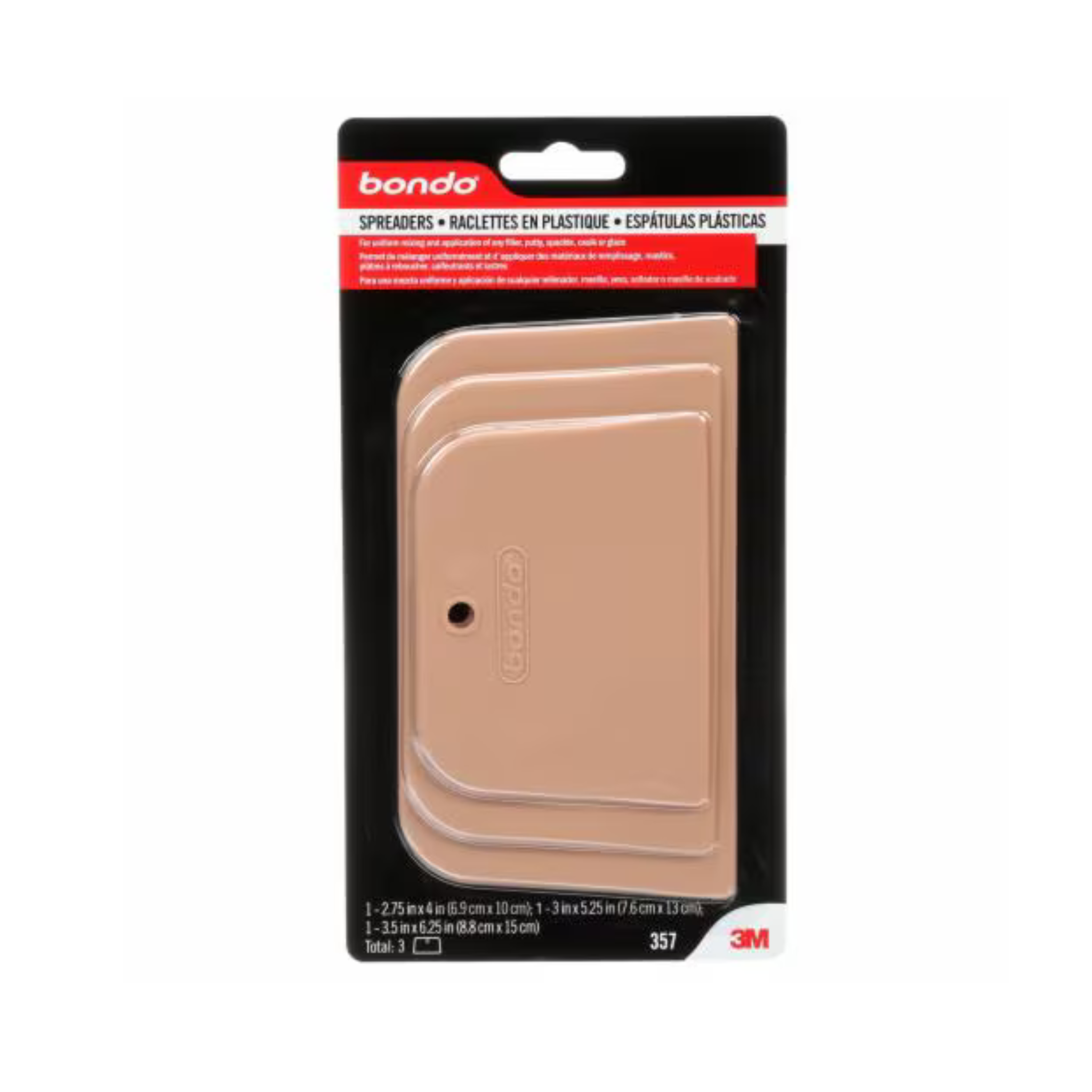 Bondo® Plastic Spreaders make applying any filler, putty, spackle, caulk or glaze easy. Equipped with three different spreaders, each pack includes the right size for any job. The spreaders are highly flexible, allowing for use on curved or flat surfaces, and the clean edge will ensure a consistently smooth finish on any surface. Once cleaned with acetone, the spreader is ready to be used for your next job.