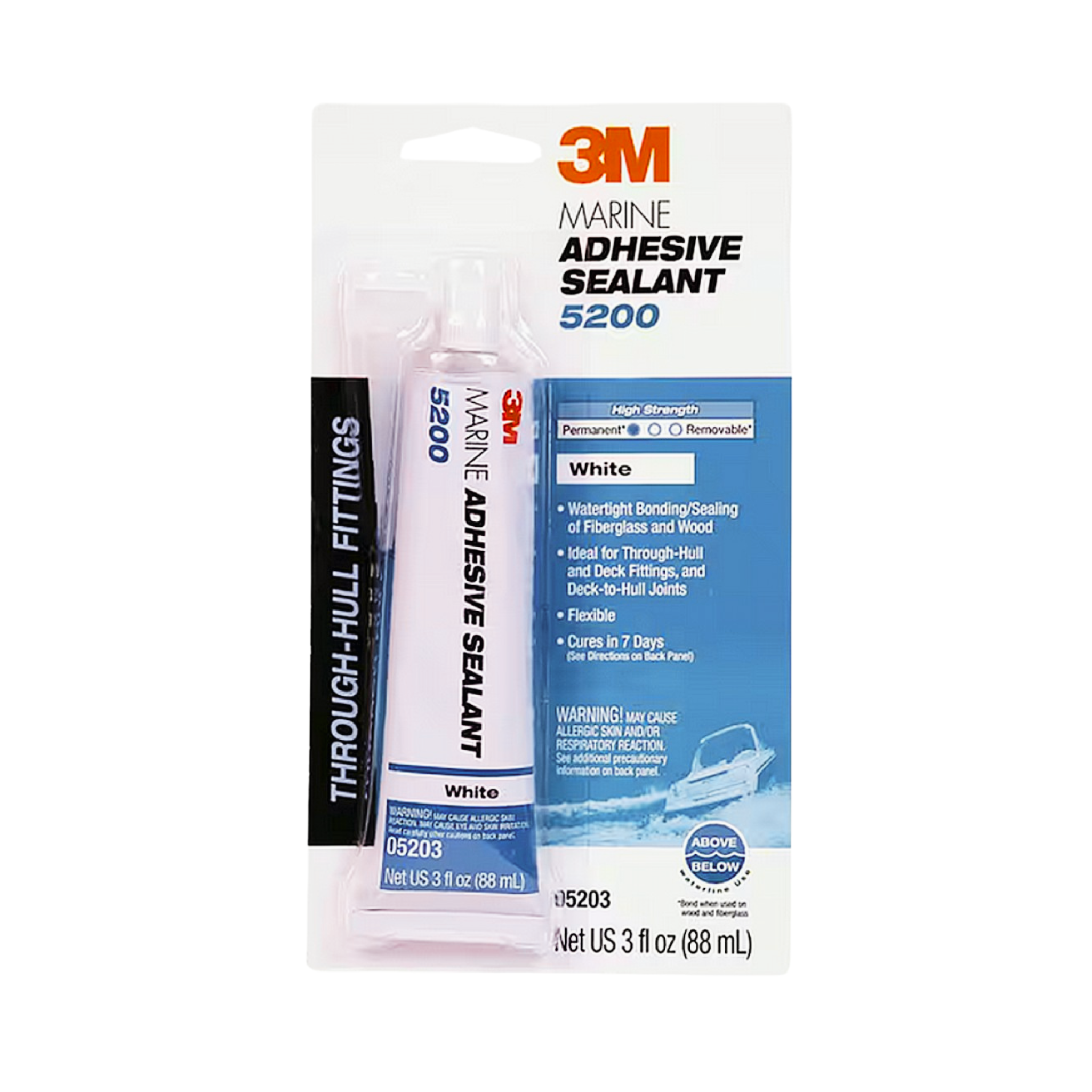 The 3M™ Marine Adhesive Sealant 5200 is a single-component, high-strength, moisture-curing, gap-filling polyurethane for permanent bonding of wood, gelcoat and fibreglass. It cures to form a firm, rubbery, waterproof seal on joints and boat hardware, both above and below the waterline. In addition, our marine adhesive sealant is flexible and allows for structural movement and dissipation of stress that may be caused by vibration, swelling, shrinking or shock. Available in both cartridge and sausage packs to meet your application requirements.