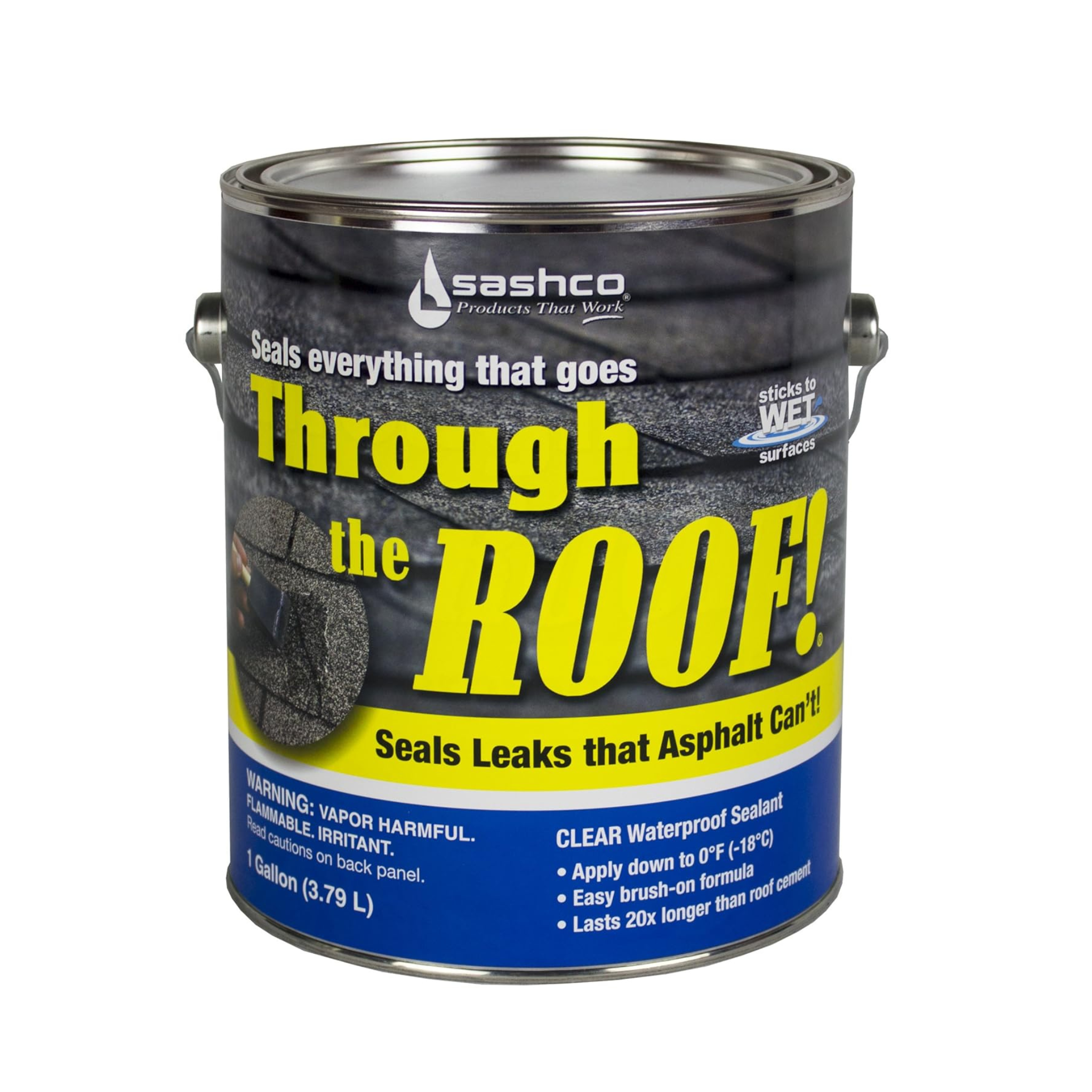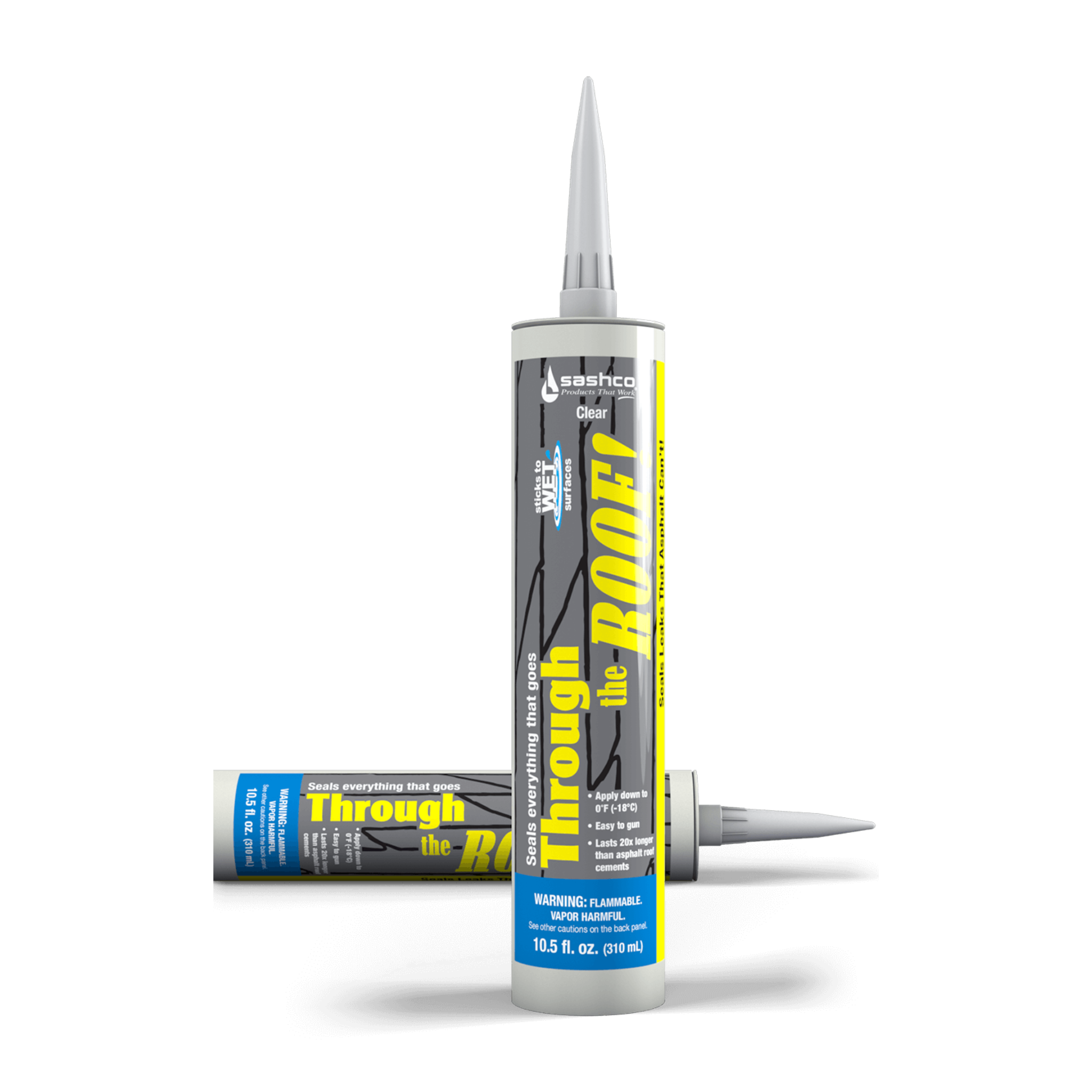 For roofers and contractors who need a sealant that works in wet conditions, Through the Roof! is a co-polymer rubber elastomeric sealant that allows them to seal leaks asphalt can’t. It delivers superior bond durability and is UV-resistant, crystal clear, and paintable.