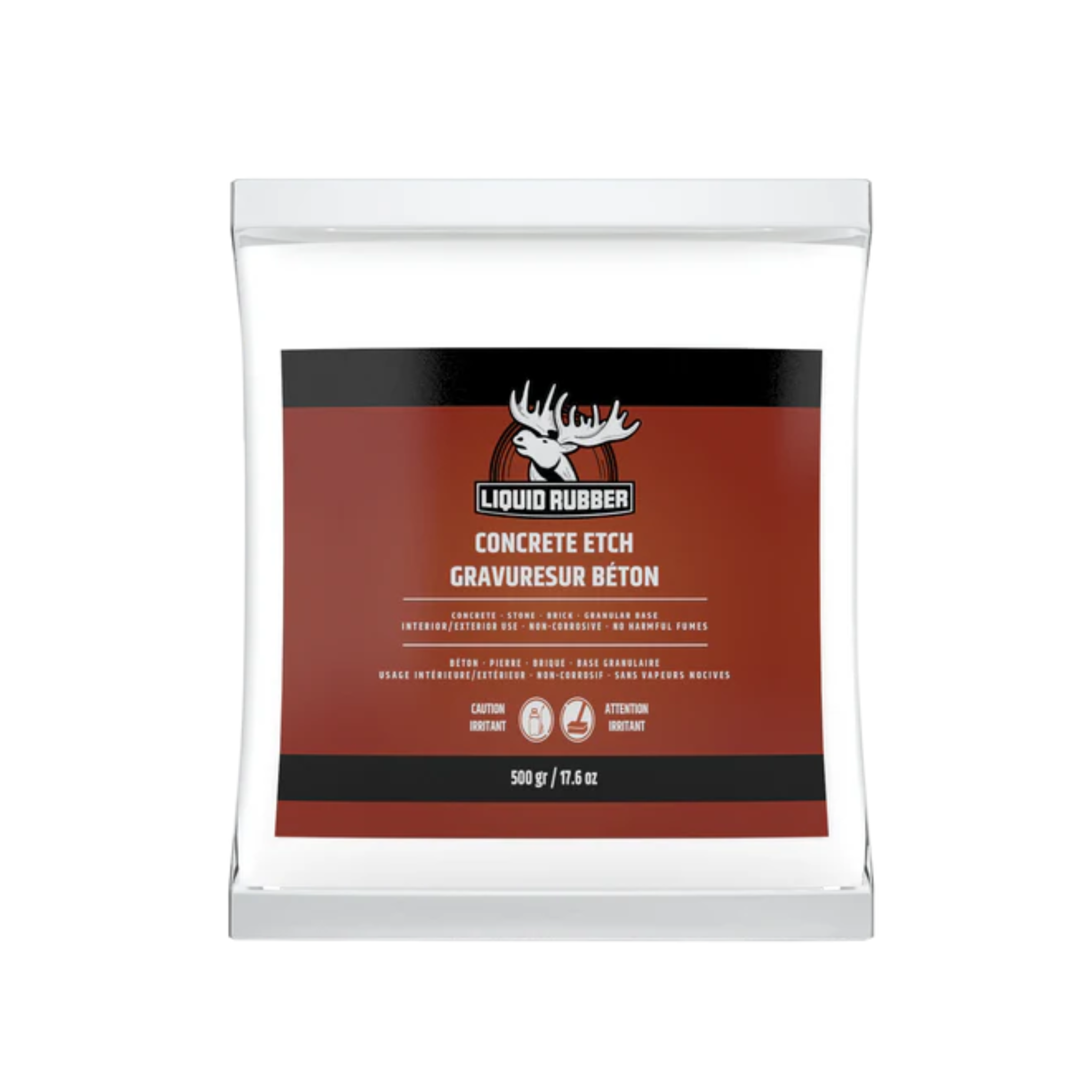 Liquid Rubber Concrete Etch contains a granular base, that is mixed with warm water to create an etching solution suitable for removing Laitance and Efflorescence in preparation of concrete, stone, and masonry surfaces prior to coating.