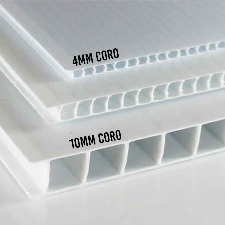 White Coroplast Hi-Core 10mm Sheet is a strong fluted polypropylene sheet suitable for larger Job Site boards up to 4'x 8'. they can also be paneled together for even larger signs.