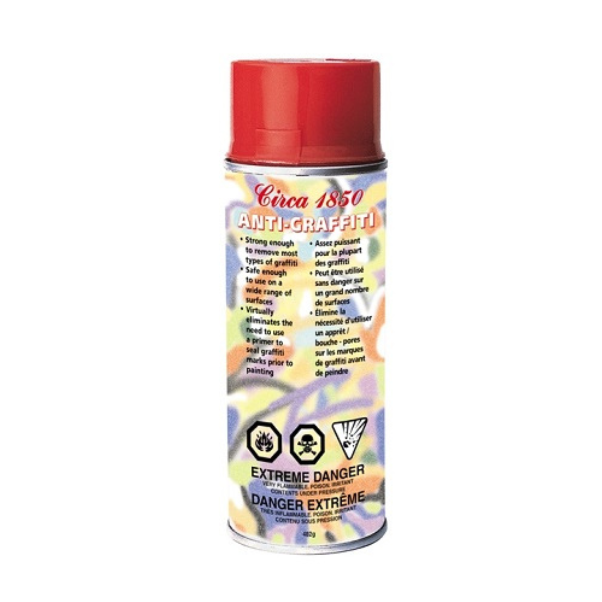 Avoid working in direct sunlight or wind. Wear Circa 1850 Stripping Gloves and protective eyewear. Protect work area with polyethylene or foil sheet. Shake can well. Point nozzle towards area, holding can 20-30cm (8-12in) from surface. Let stand for a few minutes or until the graffiti begins to soften or dissolve. On non-porous surfaces, a rag or water spray may be used to remove the graffiti. On porous surfaces, a scrub brush or power washer may be used to remove the graffiti. Reapply Circa 1850 Anti-Graffiti if required.