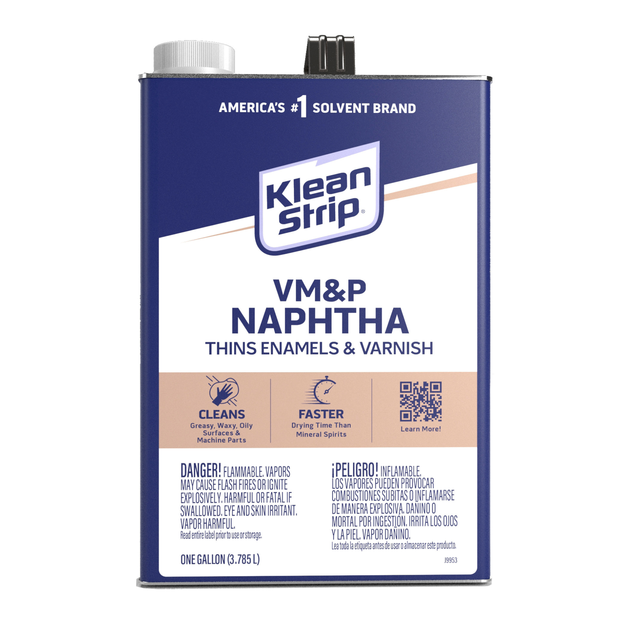 For Pro’s and DIY’ers, Klean-Strip® is the leading brand of solvents, thinners, removers, and cleaners that are dependable for reliable results. Klean-Strip® VM&P Naphtha can be used in place of Paint Thinner for oil-based paint, varnish and enamel when a faster drying time is desired. It works to clean greasy, waxy, oily surfaces and machine parts and can also be used when spraying to help prevent runs. Read entire label prior to use or storage. Keep out of reach of children. Not for sale in California.