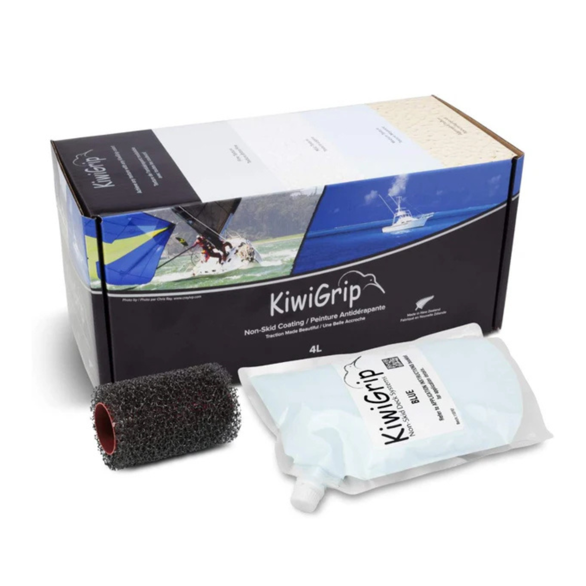 KiwiGrip is a revolutionary, durable, non-skid coating that spreads quickly and easily with our proprietary roller, offering a beautiful, high traction surface. By varying the application technique, the texture can be adjusted from a rolled pleasure boat texture to an industrial aggressive work boat texture. As a homogeneous material, KiwiGrip doesn't suffer from the problems encountered with products filled with sand, walnut shells, beads, rubber fleck, or other fillers. Coatings with fillers tend to wear through, and the fillers fall out leaving an unsafe deck that's hard to clean and even harder to re-coat.