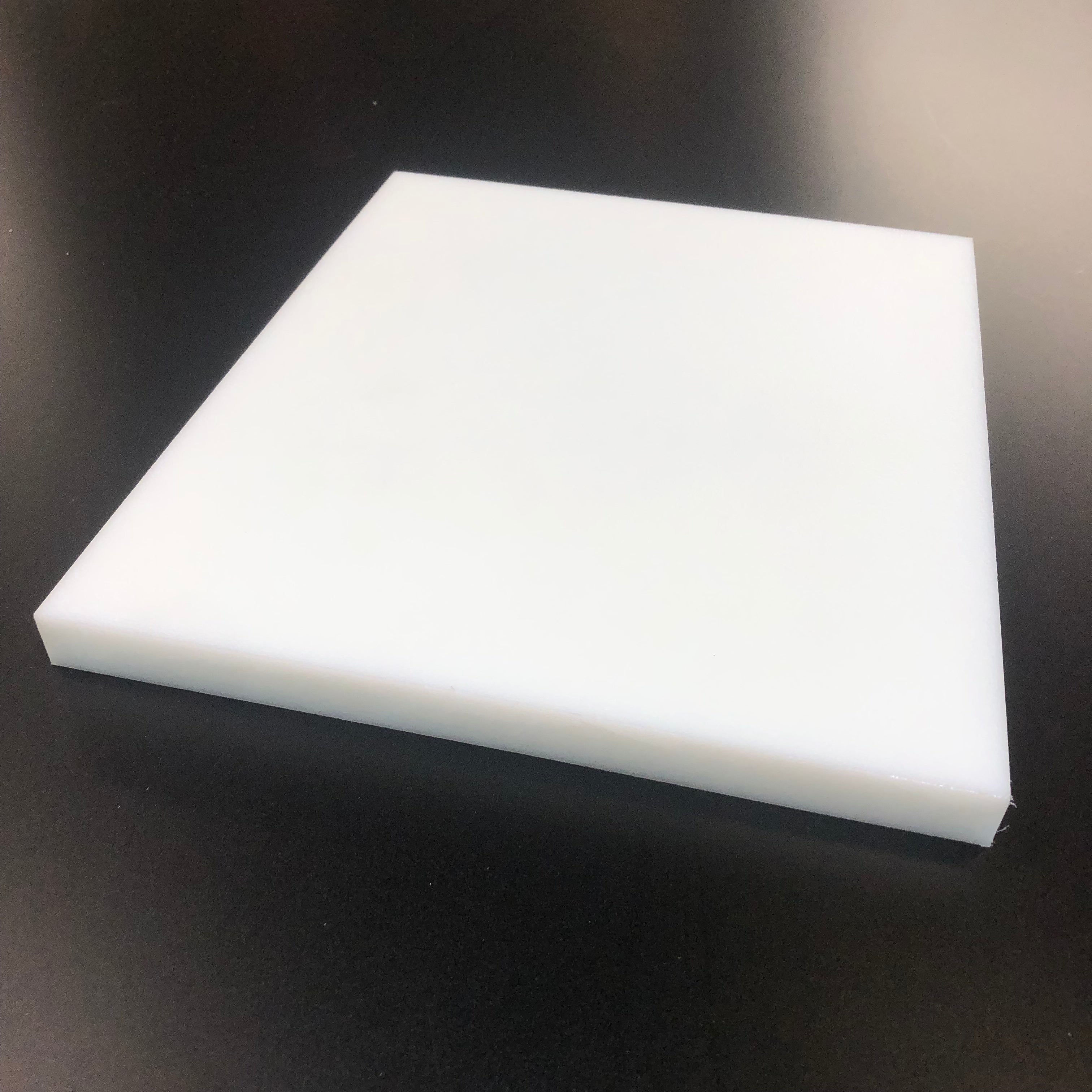 White UHMW piece cut into 12" x 11 7/16" with a thickness of 24mm or 1"