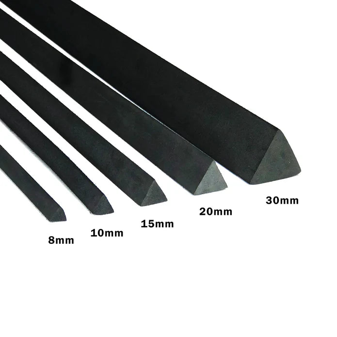 Equilateral Triangle foam bevels! Made from high-density EVA foam. Great for sharp bevelled detailing on armour and props. Also makes great edges on thick swords.