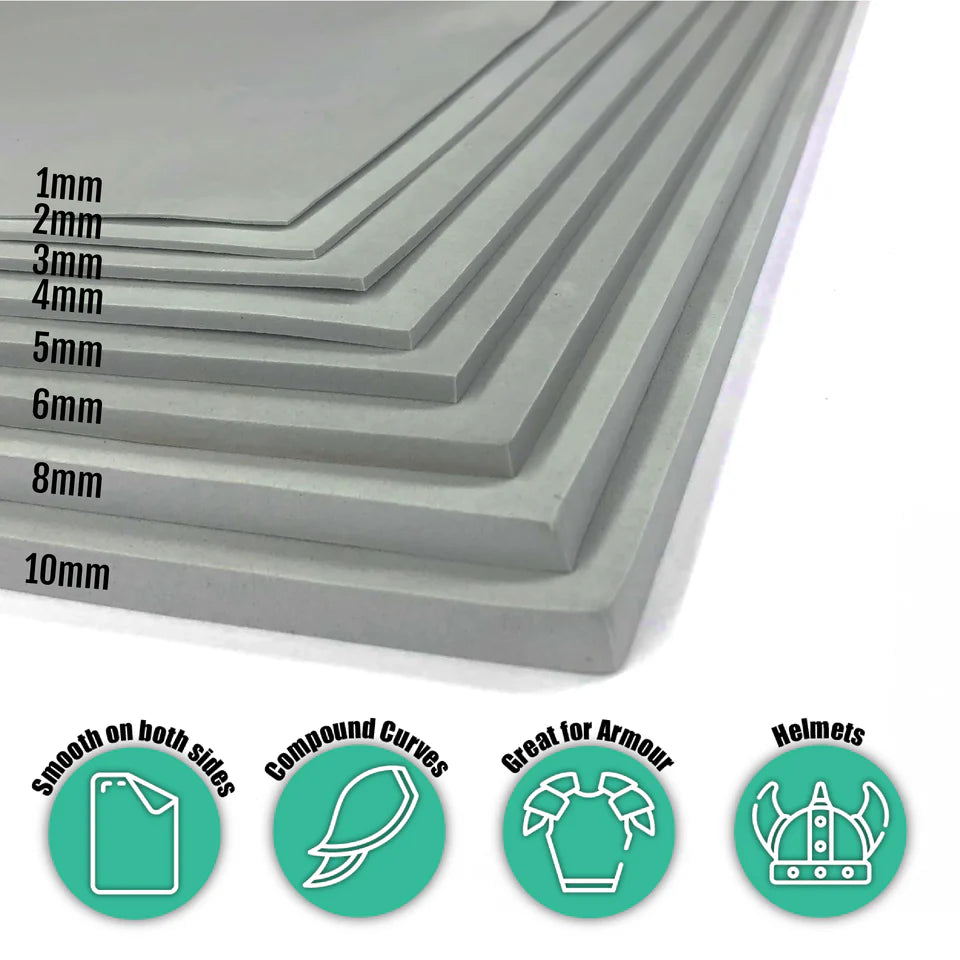 • Super formable EVA foam, heat forms very easily for compound curves and armour.