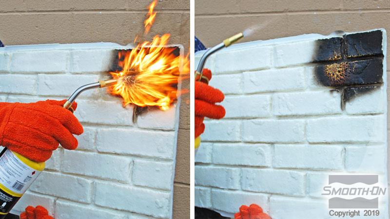 Fully cured Task 7 Flame Out™ material is tough, durable, machinable and paintable. It has much higher physical and performance properties than any other flame rated urethane available anywhere. Vibrant colors and color effects are possible by adding SO-Strong™ color tints. Applications for Task 7 Flame Out™ include making flame resistant prototype and architectural models, model toys, theme park and stage elements, durable miniatures and special effect props. Material can also be used for potting and encapsulation applications.