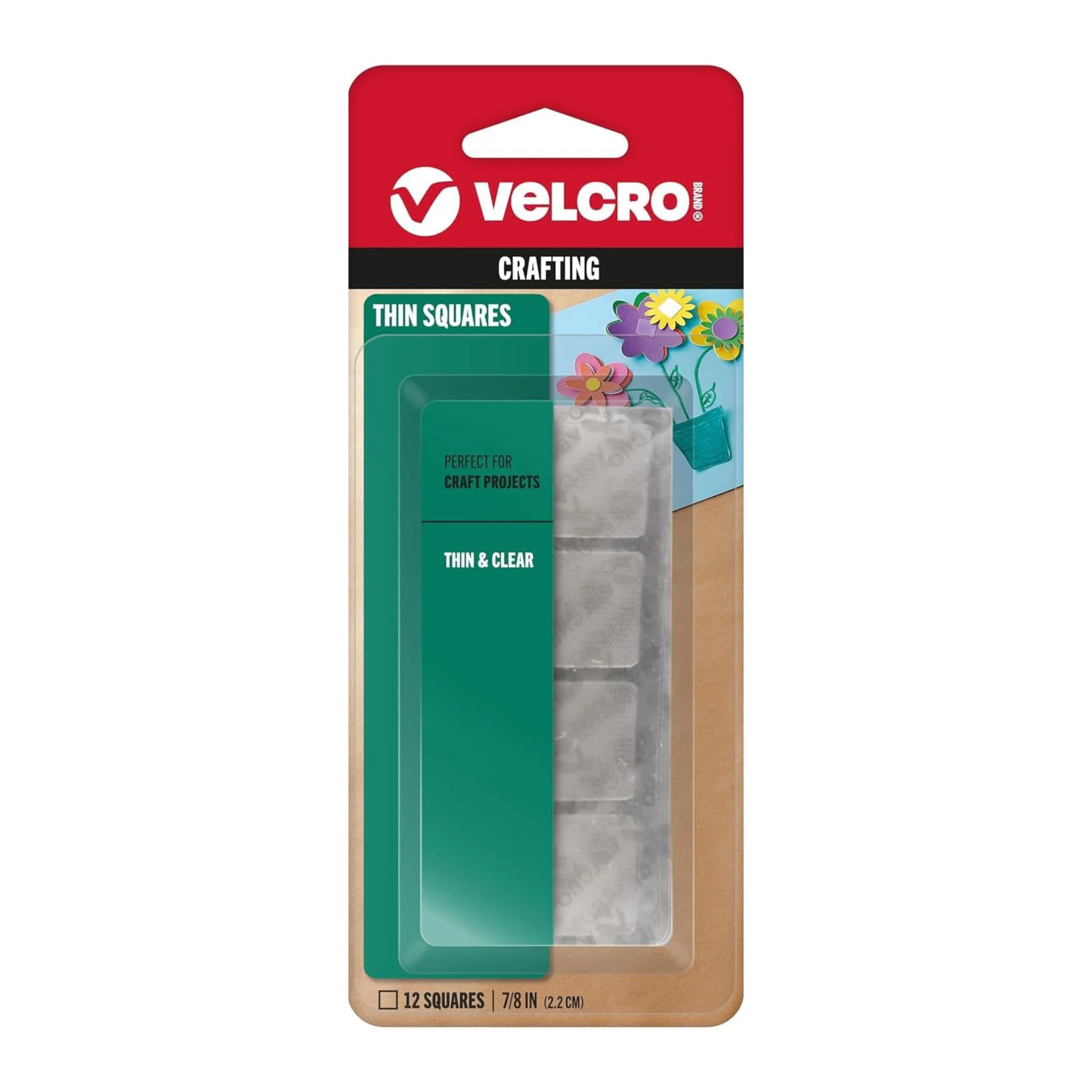 Hook and loop fasteners, self-adhesive square, 7/8" x 7/8". Press-on fastener delivers strong holding power simple peel and stick application. For smooth surfaces such as painted wallboard, glass, metal and most plastics. Hook and loop fasteners, self-adhesive square 7/8" x 7/8".