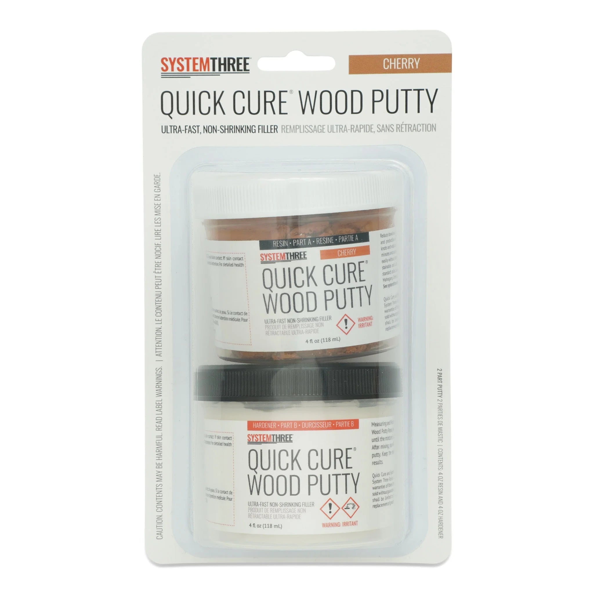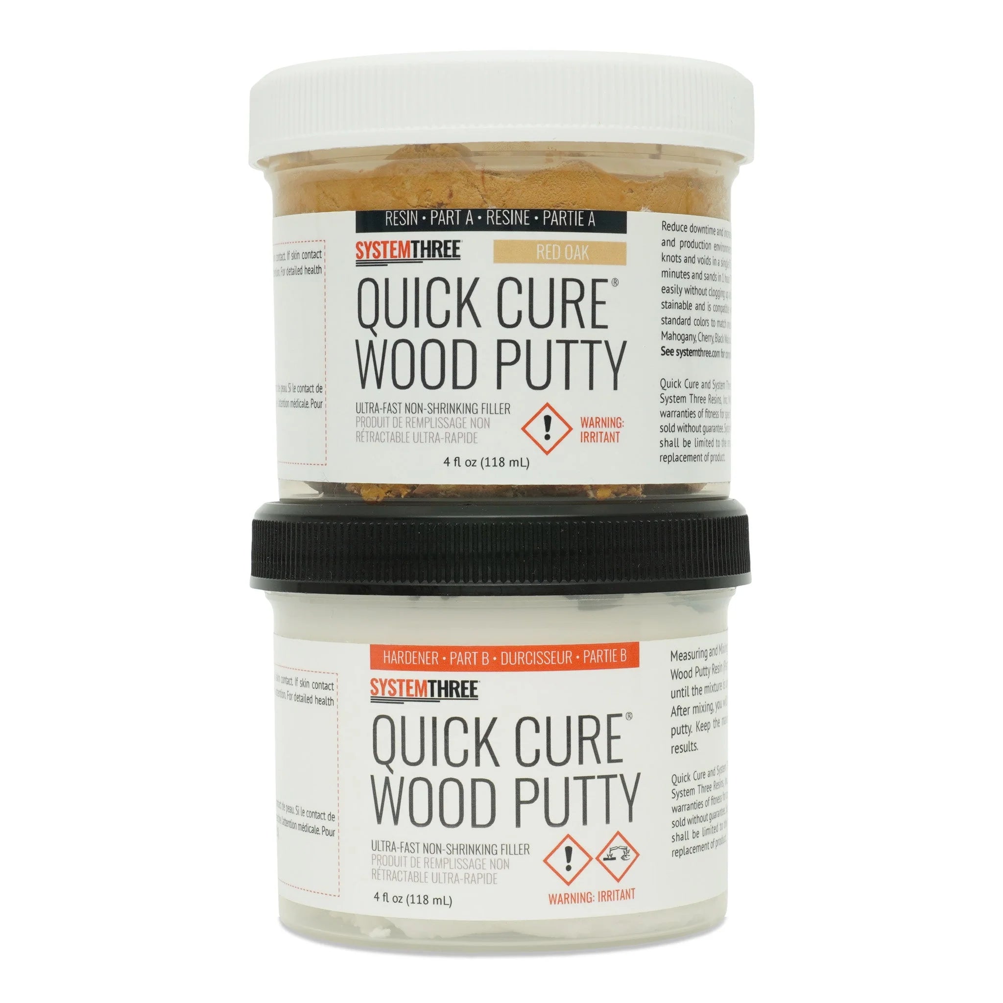 Quick Cure Wood Putty fills knots and voids in a single fill without shrinking. It sets in 10 minutes and sands in 1 hour. This unique wood filler machines easily without clogging up abrasives. Quick Cure Wood Putty is stainable and is compatible with most finishes.