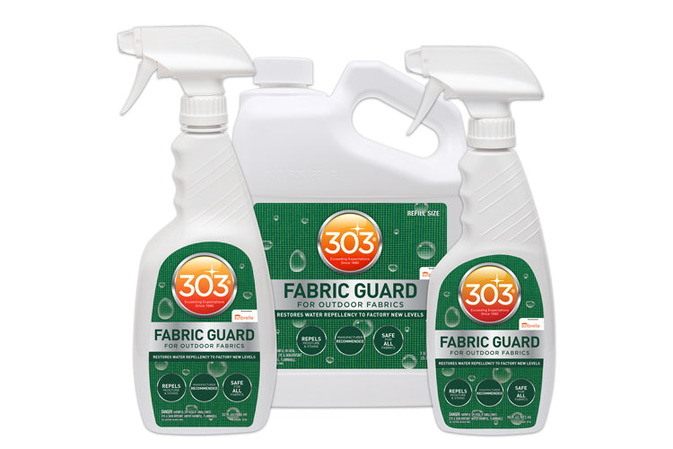 303® Fabric Guard keeps fabrics fresh, soft, colorful, and breathable, all while adding a powerful coating to repel water and prevent the most serious of stains. Use it to keep rugs clean and covers blemish-free. You can even spray it on your convertible top’s seams to prevent wicking. When applied to clean and dry fabrics, 303® Fabric Guard restores lost water and stain repellency to straight-from-the-factory levels. Keep all your favorite fabrics crisp and clean for years to come.