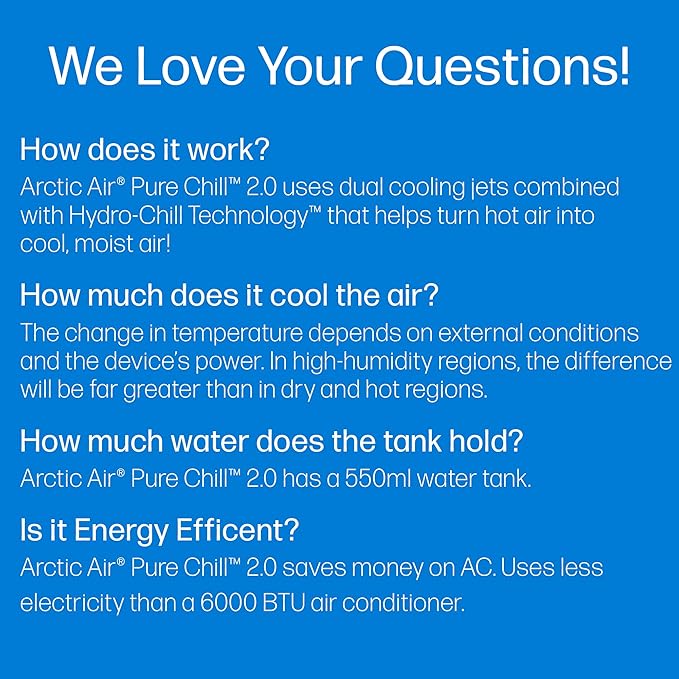 ARCTIC AIR PURE CHILL 2.0 - Evaporative Air Cooler Take your cooling comfort wherever you go with the Ontel Arctic Air Pure Chill 2.0 - a compact evaporative air-cooler that fits into any corner of your room and disperses gentle, refreshing air all day, every day.