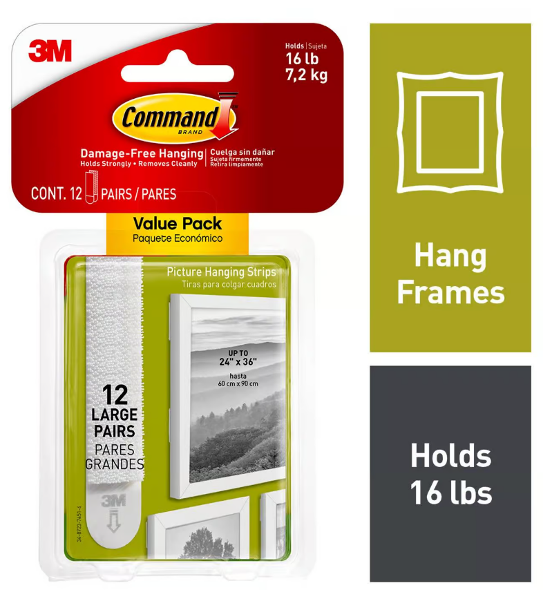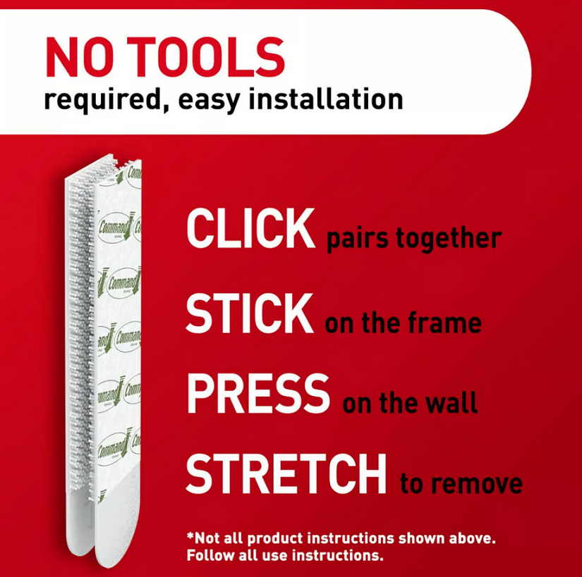 Decorate how you want, when you want without damaging your walls. Command Picture Hanging Strips let you fearlessly hang pictures without nails or tools. Not just for picture frames, these wall hangers are also great for creating a gallery wall, hanging college dorm decor, wooden letters, nursery decor, acoustic foam boards and more. These picture frame hangers click together to lock in place and keep your pictures level. When you're ready to redecorate your space, the Command Strips remove cleanly and damage free.