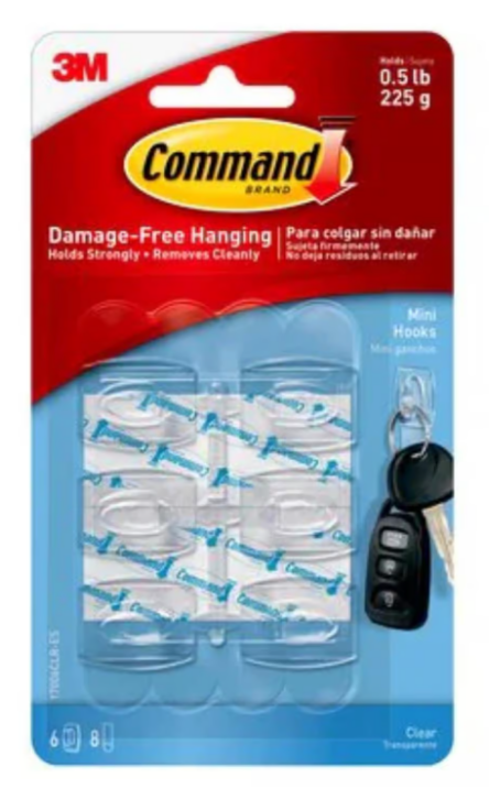 Forget about nails, screws and tacks, Command clear hooks are fast and easy to hang! The revolutionary Command clear adhesive strip adhere firmly to many surfaces, including paint, wood, tile and more. Yet, come off leaving no holes, marks or sticky residue. Command clear hooks and strips blend in seamlessly allowing you to show what matters most, your decor, not how it's hung up. Rehanging them is as easy as applying a Command clear refill strip, so you can take down, move and reuse them again and again.