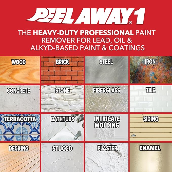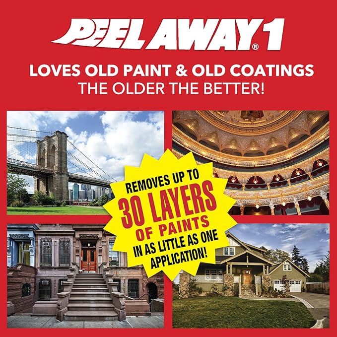 Peel Away 1 Paint Remover is a premier, industry-leading, heavy-duty paint removal product formulated to remove up to 30 layers of paints and coatings in as little as a single application. It is engineered to remove oil, alkyd, and lead-based paints and most other older coatings from virtually all types of interior and exterior surfaces. Best of all, it penetrates to the bottom layer and performs even when the top layers are latex, acrylic, or epoxy, as long as the bottom layer is an oil, alkyd or lead-based coating. Peel Away 1 is NOT engineered to work if the only coatings are latex, acrylic, or epoxy.