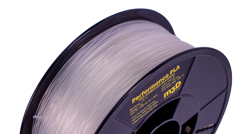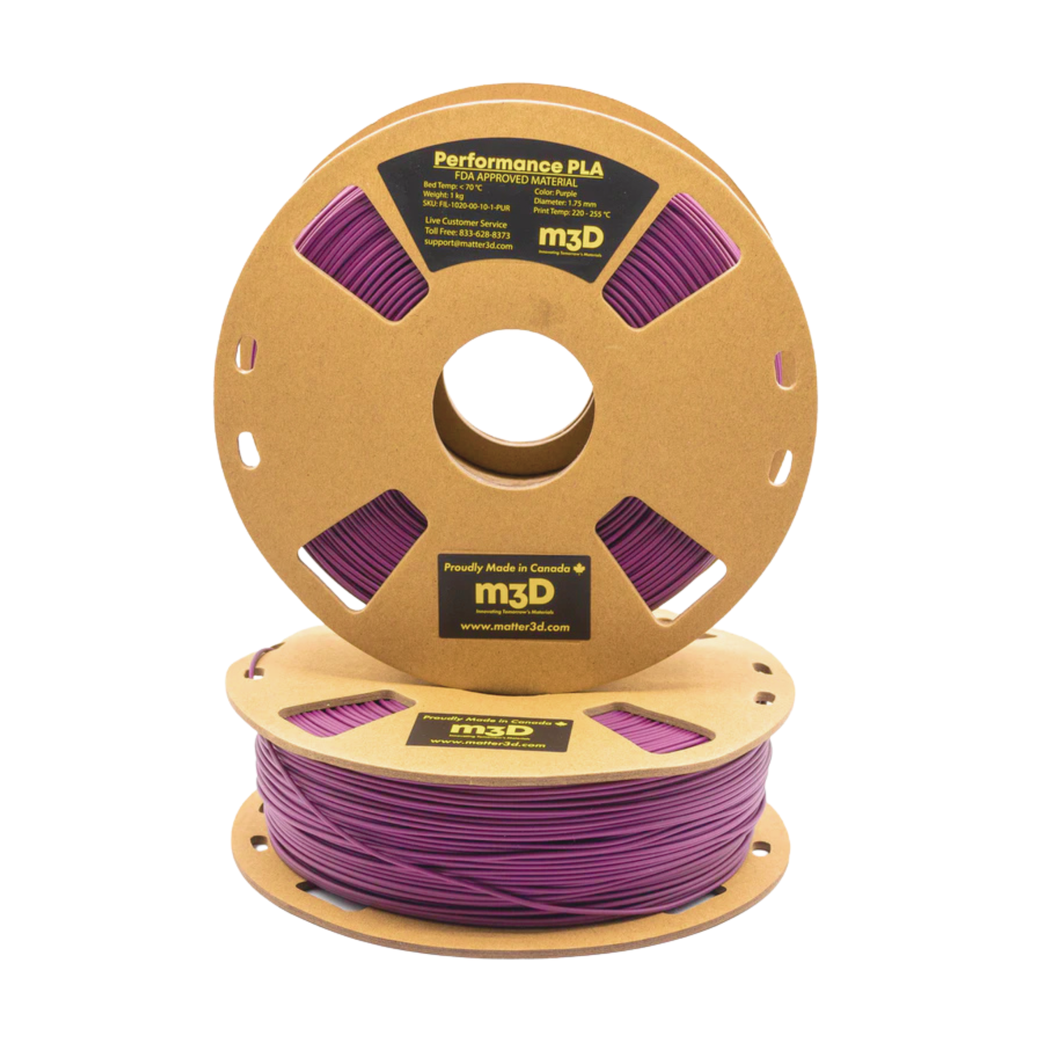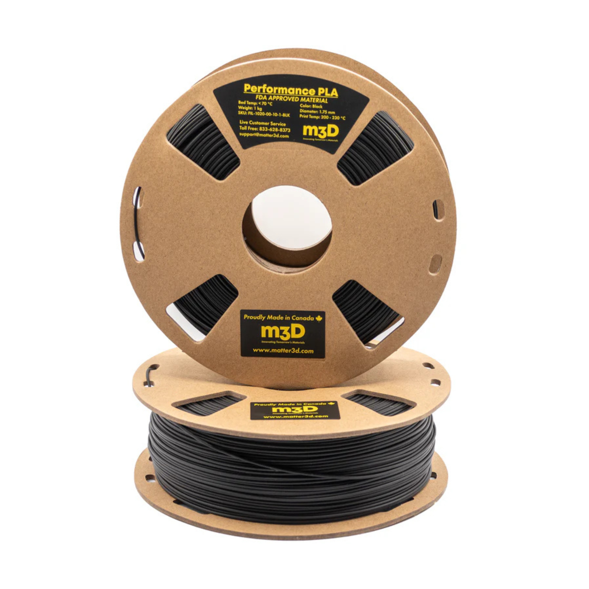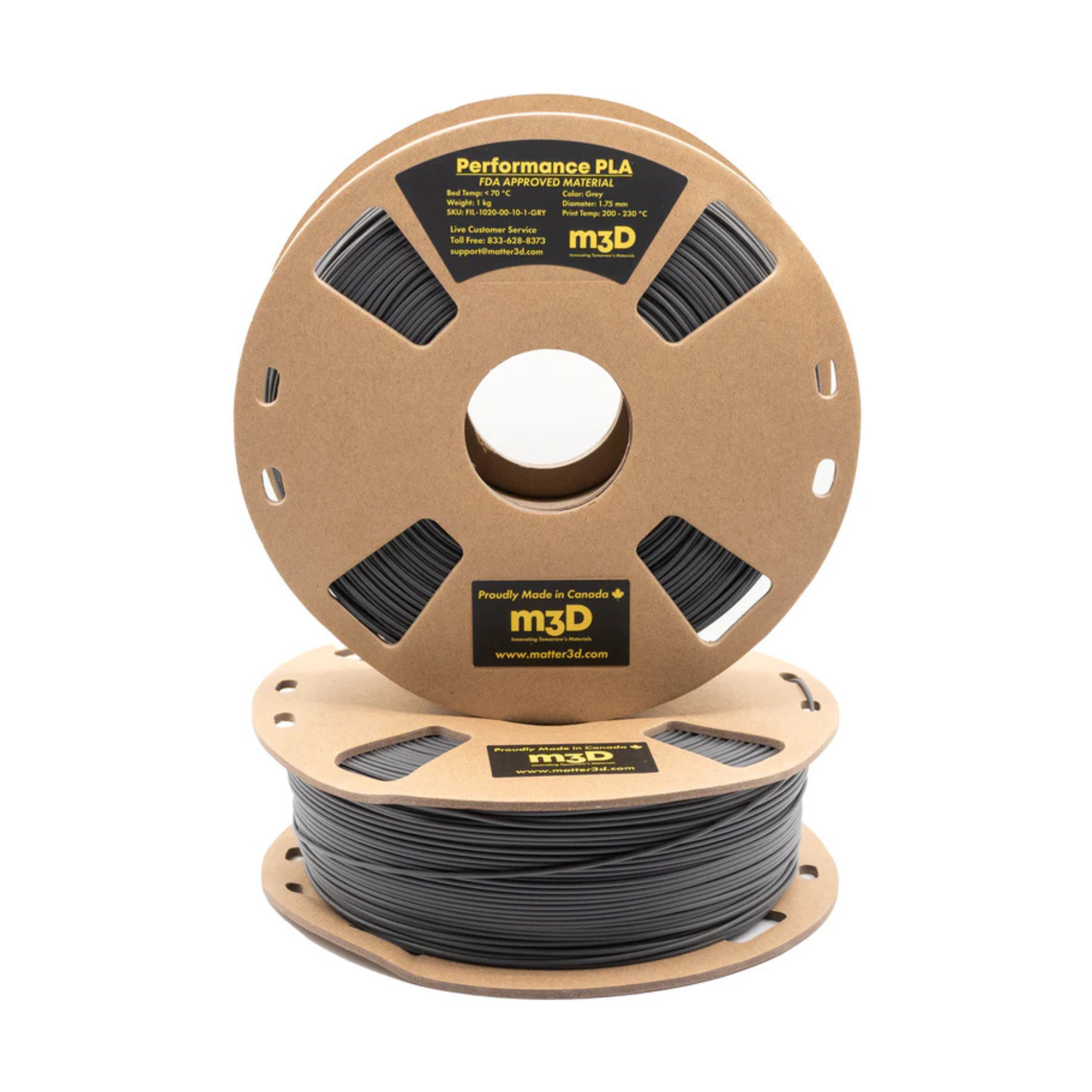Matter3D’s Performance PLA is FDA approved for food and beverage use, and is manufactured from pure NatureWorks 3D850 resin. This engineering-grade PLA has higher bulk crystallization and is developed for high-heat (< 85 °C) and high-strength applications (stronger than most ABS materials).