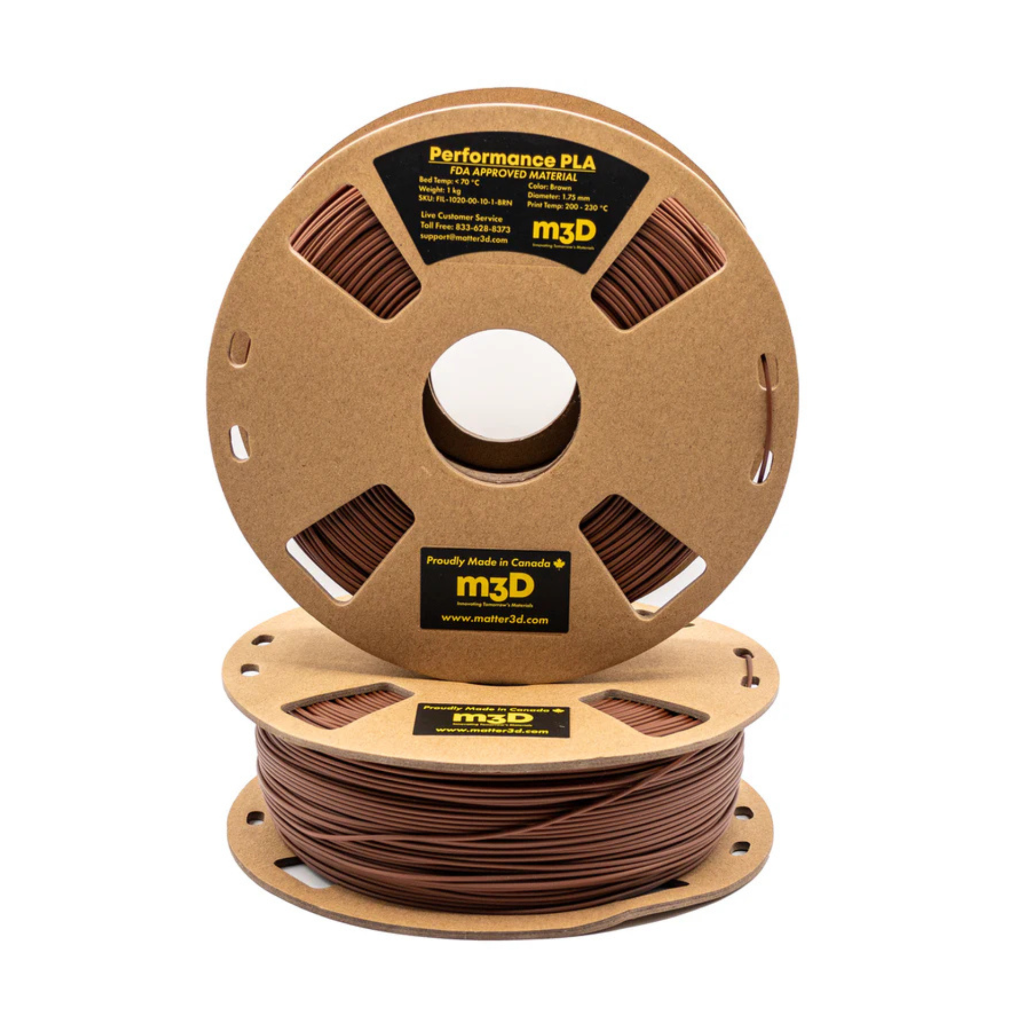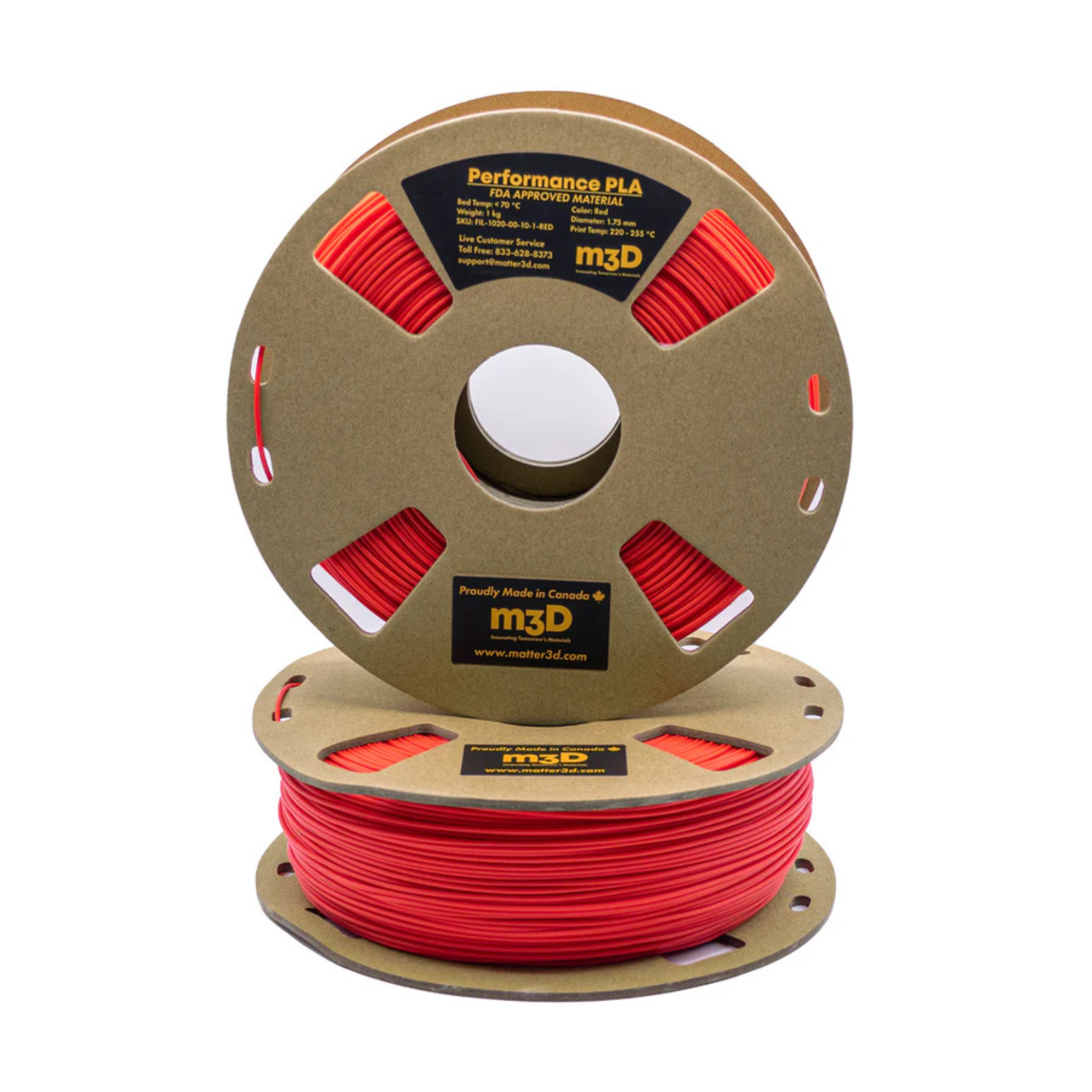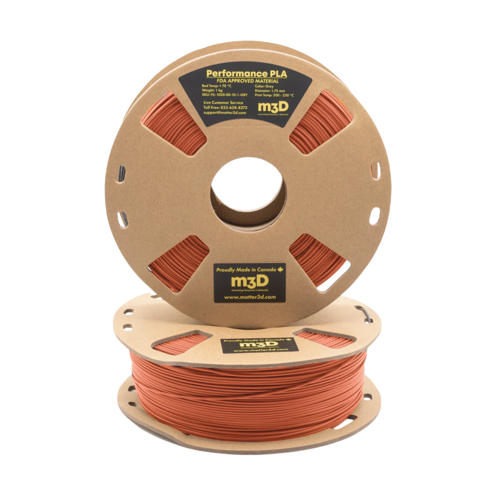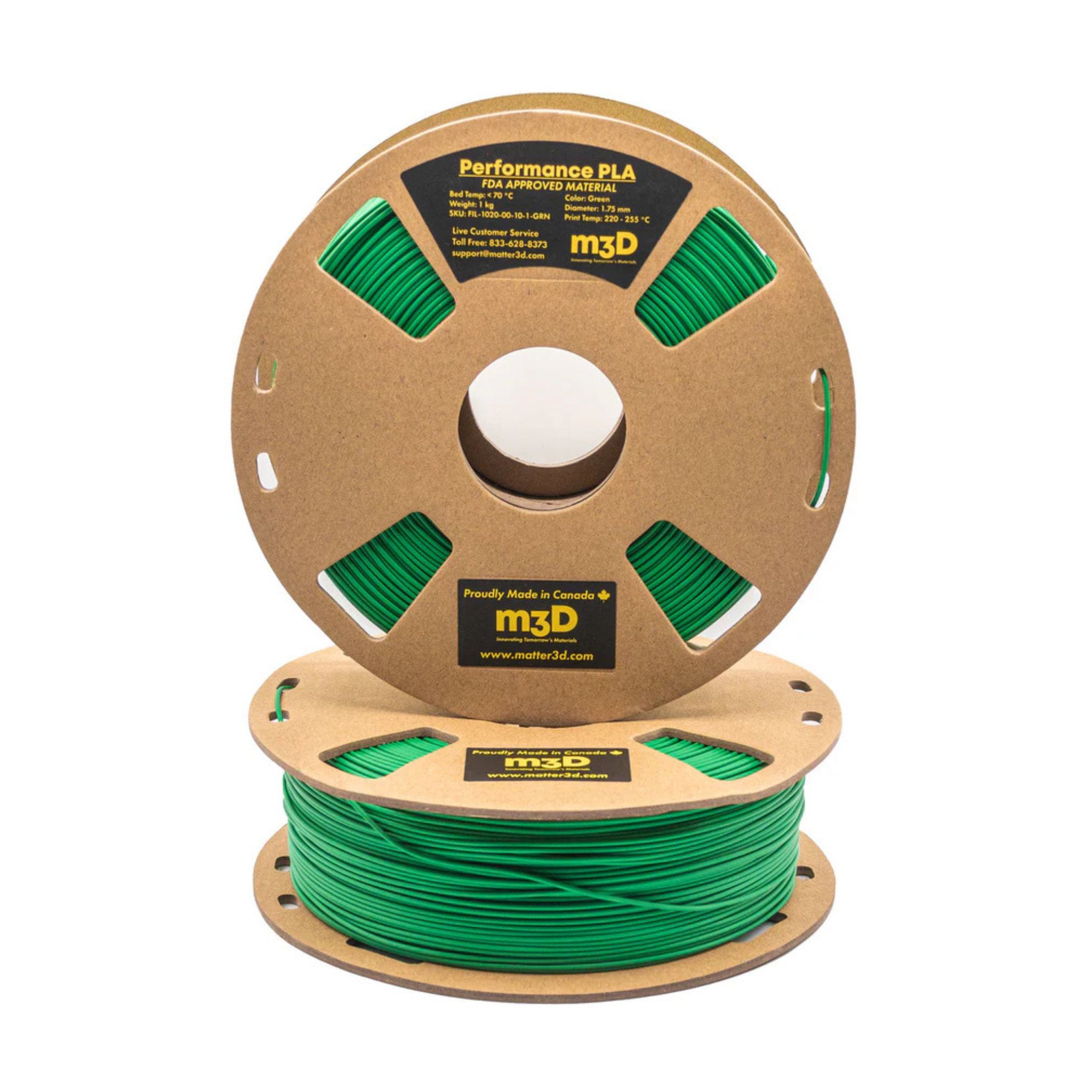 Matter3D’s Performance PLA is FDA approved for food and beverage use, and is manufactured from pure NatureWorks 3D850 resin. This engineering-grade PLA has higher bulk crystallization and is developed for high-heat (< 85 °C) and high-strength applications (stronger than most ABS materials).