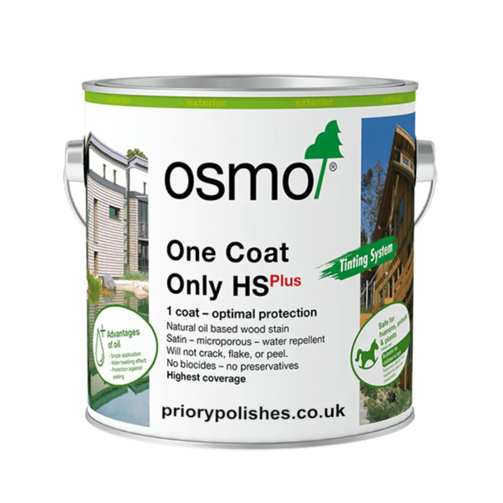 Osmo One Coat Only HS Plus is a semi-transparent, satin exterior and interior wood finish that colors, protects and meets the full needs of exterior wood with only a single coat. The finish enhances the natural wood grain and texture and is also microporous which leaves a breathable surface. Does not crack, peel, flake or blister. Very durable, water repellent, moisture regulating, prevents wood swelling and is weather and UV resistant.