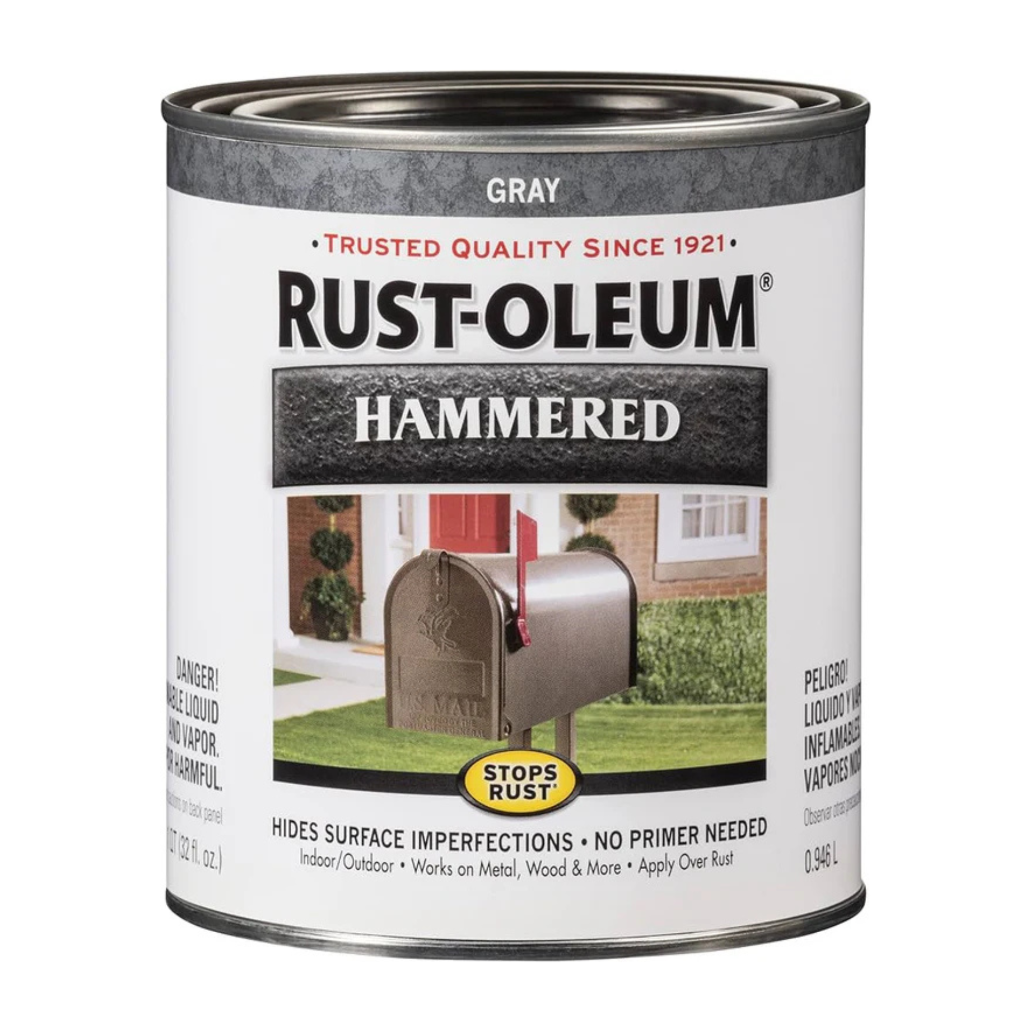 Rust-Oleum® Stops Rust® Hammered hides flaws and imperfections found in scratched, rusted or pitted metals. Apply directly over rust. Works on metal wheelbarrows, lighting fixtures, wheel rims and other metals.
